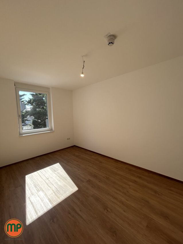 Betritt man die Wohnung, fällt der Blick sofort auf das Schlafzimmer, das sich auf der rechten Seite befindet. Der hochwertige Vinylboden, der den Raum schmückt, verleiht dem Schlafzimmer eine besondere, einladende Atmosphäre und sorgt für ein behagliches Wohngefühl. Auch vom Vorraum aus erreichen Sie das lichtdurchflutete Badezimmer, das mit einer großzügigen Walk-In Regendusche ausgestattet ist und höchsten Komfort bietet.