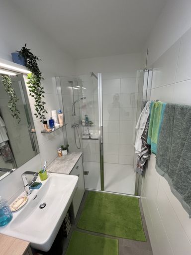 Die Wohnung verfügt über ein modernes Badezimmer mit einer Dusche, die für eine erfrischende Abkühlung sorgt. Die hochwertigen Fliesen und die stilvolle Einrichtung machen das Badezimmer zu einer Wohlfühloase. Die Wohnung ist außerdem mit Kabel- und Satelliten-TV ausgestattet, damit Sie Ihre Lieblingssendungen nicht verpassen.