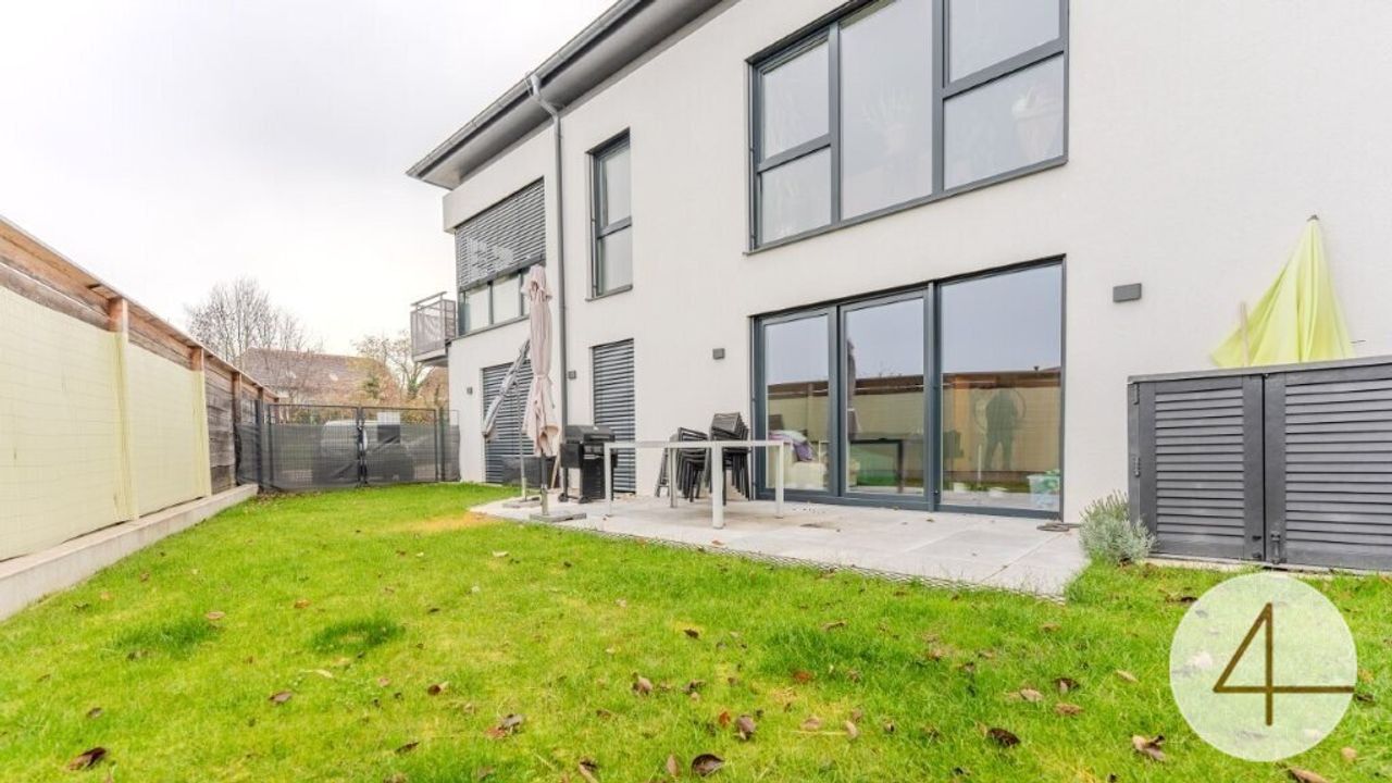 Die neuwertige Liegenschaft bietet: riesige Fensterfronten, Terrasse und Eigengarten und eine fast uneinsichtige Lage in einer Sackgasse.