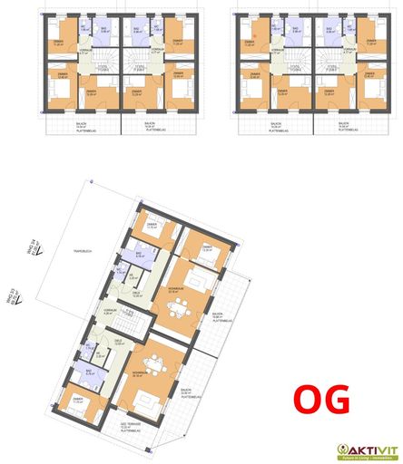 - 2 "Doppelhäuser" mit je 2 Maisonett-Wohnungen.