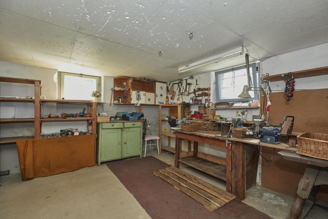 Ebenso ist das Haus unterkellert, wodurch weiterer Stauraum und Platz vorhanden ist. Hier finden Sie unter anderem eine Werkstatt, den Heizraum, einen Lagerraum und einen Erdkeller.