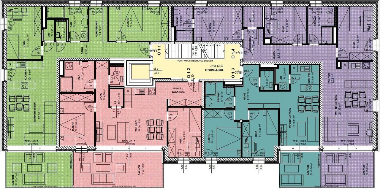 Die Wohnflächen reichen von ca.49m² bis hin zu ca.95m².