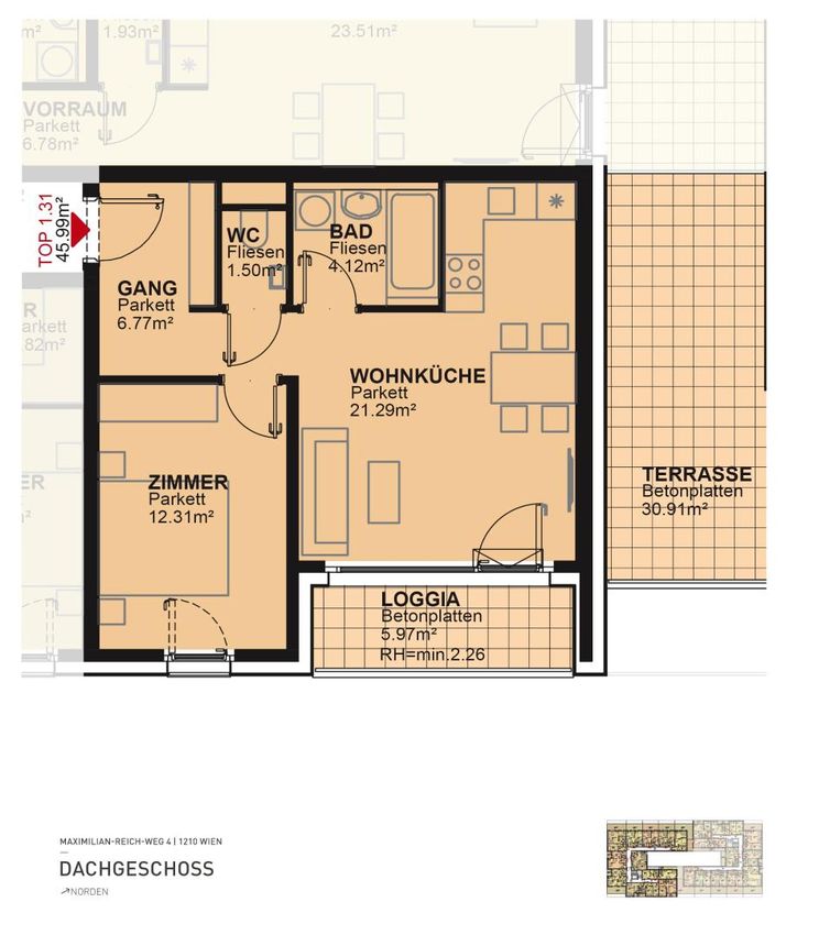 Frei Top 1-31 45,99 m² 2 Zimmer 289.900