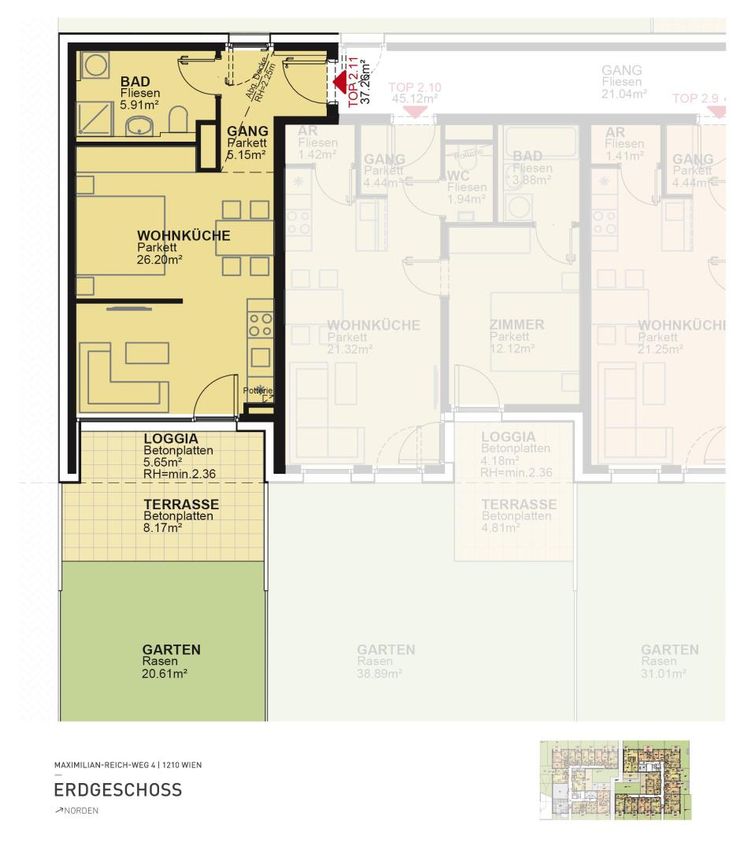 Status Top-Nummer Wohnfläche Zimmeranzahl Preis für Anleger (inkl. Küche und Tiefgaragenstellplatz)