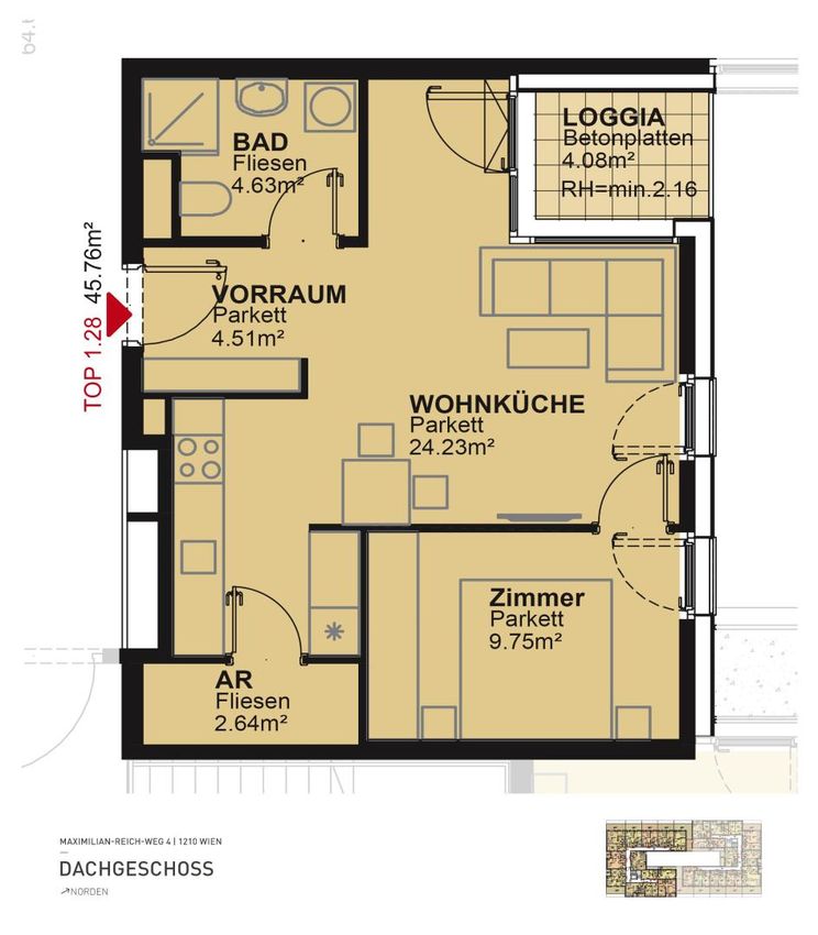 Frei Top 1-28 45,76 m² 1 Zimmer 278.900