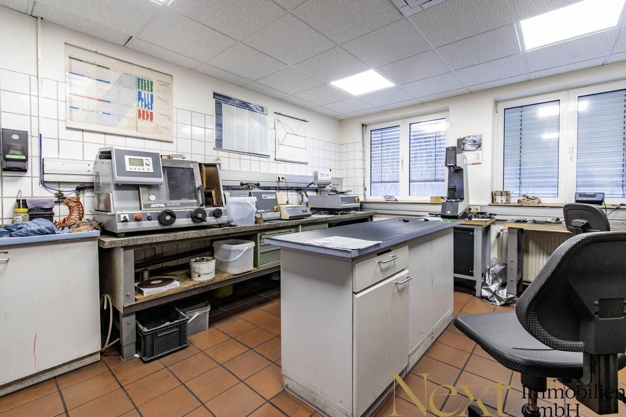 Weitere technische Highlights umfassen eine Rauch- und Wärmeabzugsanlage, eine Alarmanlage, eine Lüftungsanlage sowie Zugluft über Gebläse. Die Bürofläche ist mit einer Klimaanlage ausgestattet. Ein Brunnen, der im Dezember 2024 saniert wurde, steht für die Wasserversorgung zur Verfügung. Auf dem Gelände befinden sich zwei Trafos (1250 KVA), die zum Grundstück gehören und somit im Kaufgegenstand enthalten sind.