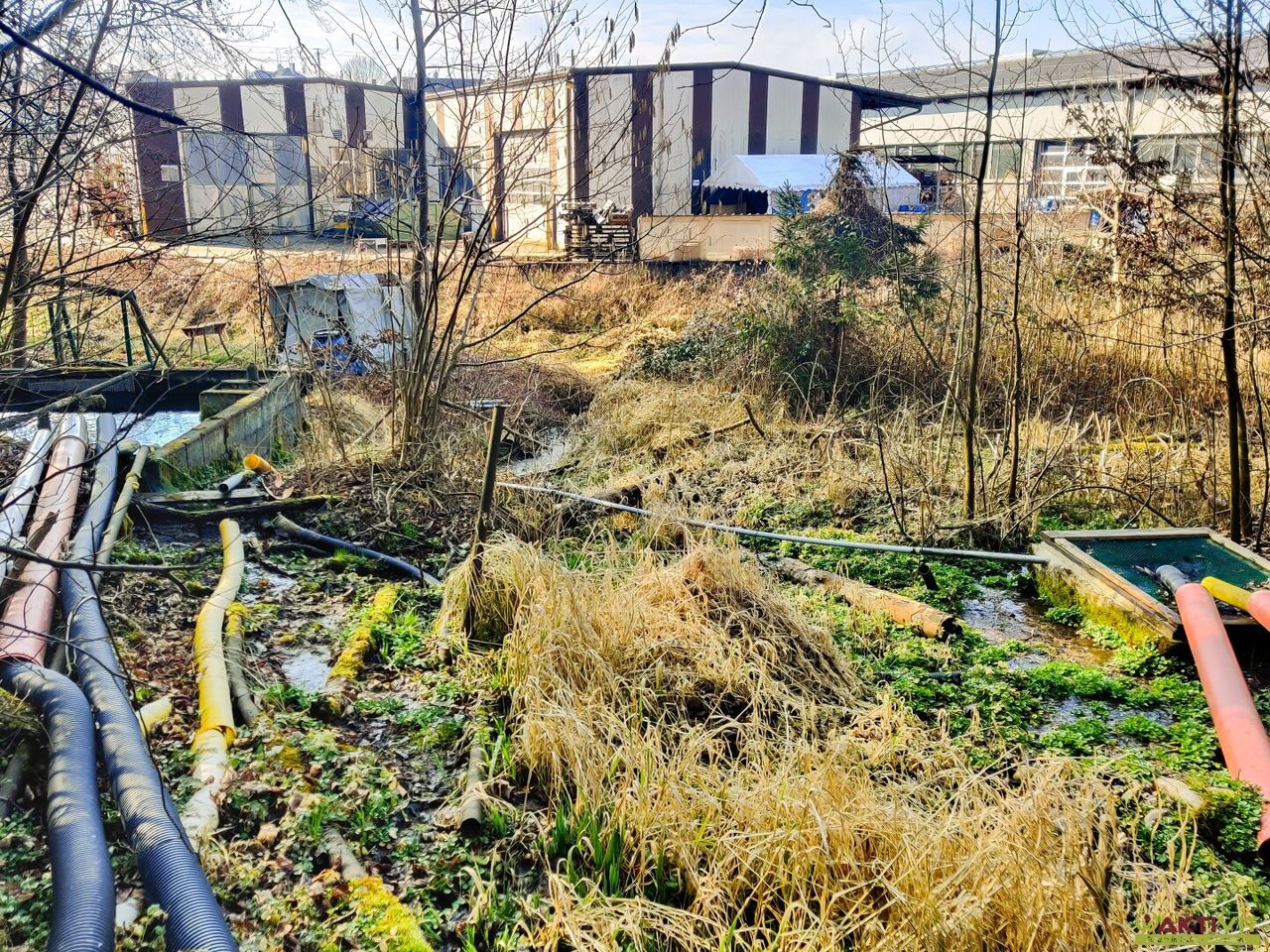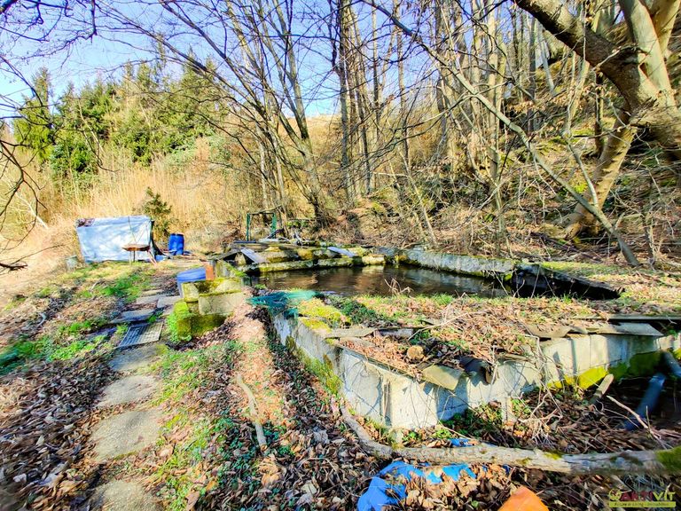 Direkt angrenzend liegen Freilandflächen mit Wald- und Grünbestand sowie eine bewirtschaftete Fischzucht. Diese ist derzeit verpachtet und wird über eine gefasste Quelle versorgt, die zusätzlich ein Haus sowie ein Nachbargrundstück mit Wasser beliefert.