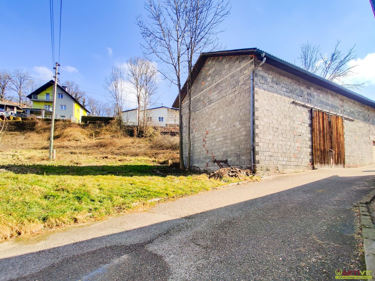Auf einem Teil mit etwa 1.000 m² Widmung als „Bauland Wohngebiete (W)“ befindet sich ein Stadl mit geschätzten 210 m² Nutzfläche, davon ca. 50 m² Garage und ca. 160 m² Lager.