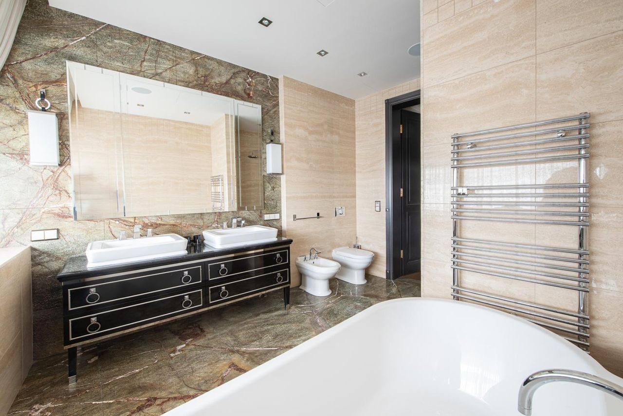 - Zwei luxuriöse Bäder mit feinstem Marmor und stilvollen Armaturen
