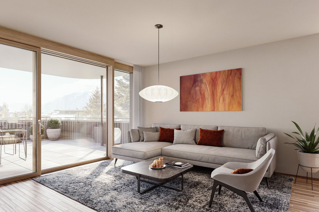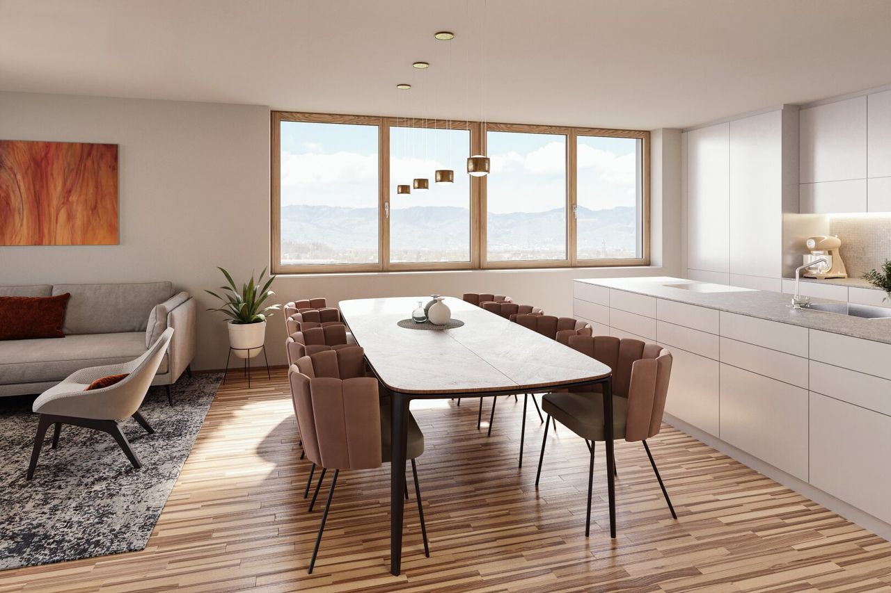 Die zwei exklusiven Maisonette-Dachgeschosswohnungen bieten großzügige Terrassen mit einem atemberaubenden Blick auf den Kummenberg und die Schweizer Berge. Die zentrale Lage verbindet optimale Infrastruktur mit naturnaher Umgebung und macht die Wohnanlage zu einem idealen Zuhause für anspruchsvolle Bewohner.