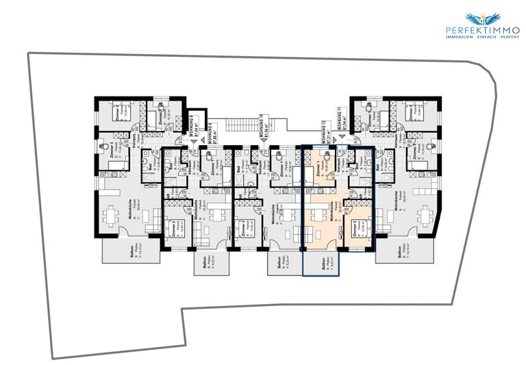 17 moderne Wohnungen auf drei Etagen mit großzügigen Freiflächen (Balkone, Terrassen, Gärten)