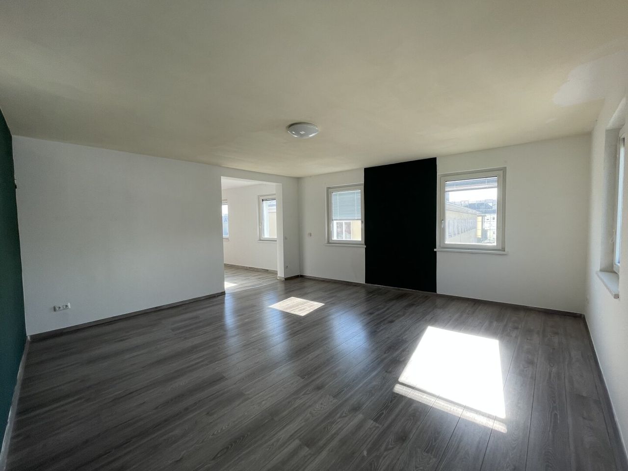 Mit einer großzügigen Fläche von 103 m² bietet diese lichtdurchflutete Wohnung ausreichend Platz für Singles, Paare oder kleine Familien. Die offene Wohnküche ist der ideale Ort, um kulinarische Köstlichkeiten zu zaubern und gesellige Abende mit Freunden zu genießen. Hier treffen modernste Ausstattung und ein durchdachtes Raumkonzept aufeinander.