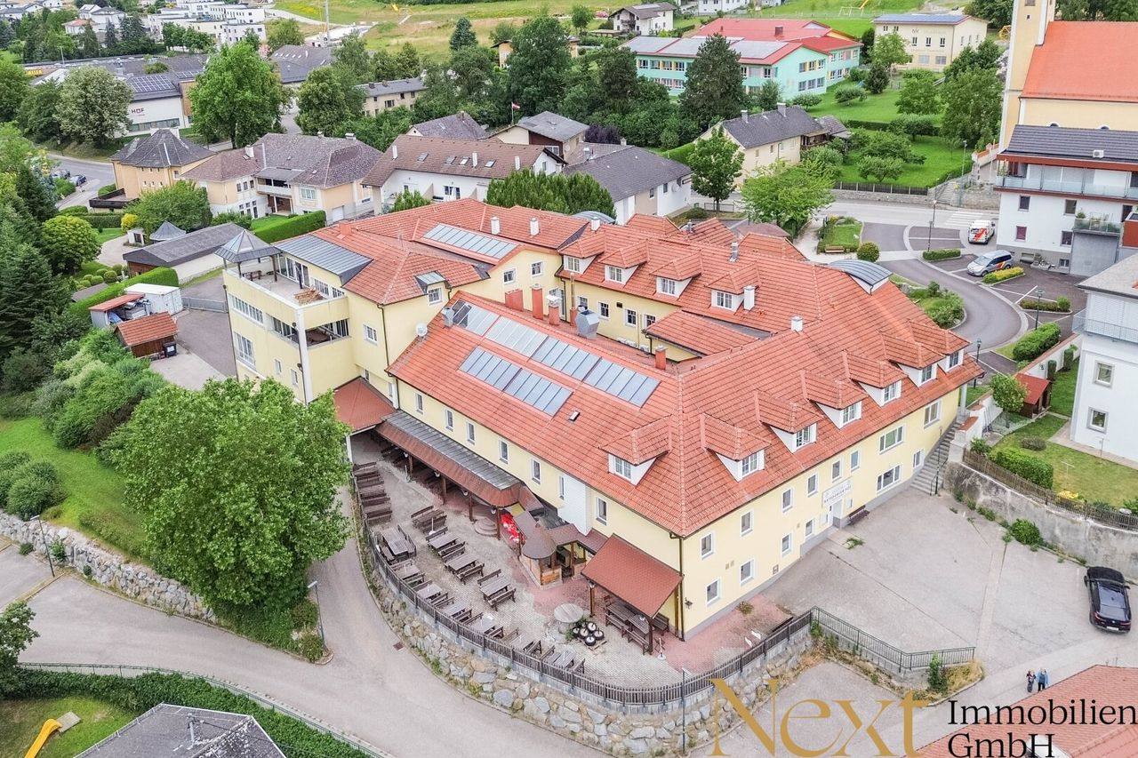 Das Gebäude verfügt über insgesamt 9 Wohnungen und 18 Fremdenzimmer, wobei der Veranstaltungssaal zusätzlich noch um 11 Zimmer erweitert werden könnte. Die beiden Büroflächen im Obergeschoß sind derzeit inkl. 2 von insgesamt 3 Lagerflächen vermietet.