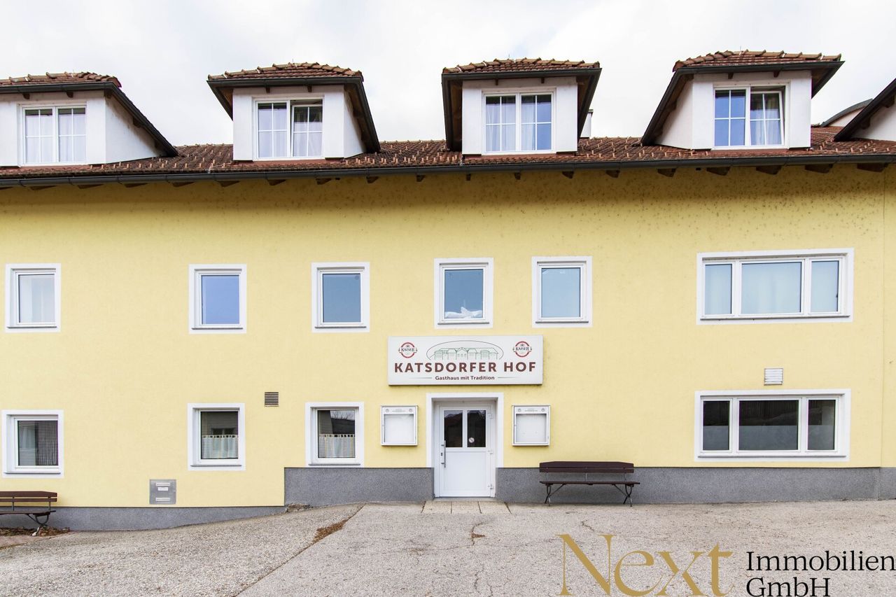 Zinshaus mit Geschäftslokalen im Erdgeschoß und Büros bzw. Wohnungen im Obergeschoß im Ortszentrum von Katsdorf zu verkaufen! Dieses großzügige Anwesen misst eine Nutzfläche von Gesamt ca. 2.891,49m², ist aufgeteilt auf 4. Geschoße und verfügt zusätzlich über eine gemütliche Gastterrasse im Untergeschoß und großzügigen Freiflächen. Das aktuell zu verpachtende Gasthaus, welches sich im Untergeschoß (=Erdgeschoß unterhalb vom Ortsplatz) befindet, ist im urigen Stil gehalten und teilt sich in mehrere große und kleine Gasträume auf. Das Gasthaus ist komplett eingerichtet und betriebsbereit. Im Erdgeschoß befinden sich insgesamt 3 Geschäftslokale wovon aktuell eine Fläche als Nachtlokal vermietet ist. Das Gebäude verfügt über insgesamt...