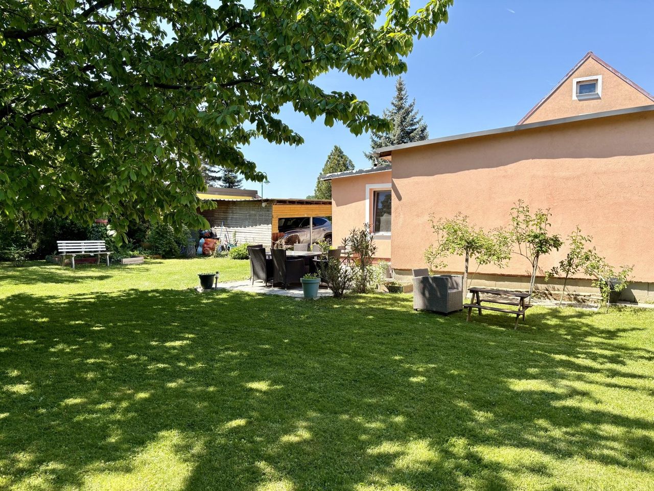 Der Außenbereich der Liegenschaft begeistert mit viel Platz, gepflegtem Grün, überdachtem Sitzbereich, einer Gartenhütte, sowie einem überdachten Abstellplatz und weiteren Stellflächen auf dem Grundstück. Der große Garten mit altem Baumbestand bietet Privatsphäre und viel Raum zum Spielen, Gärtnern oder Entspannen.