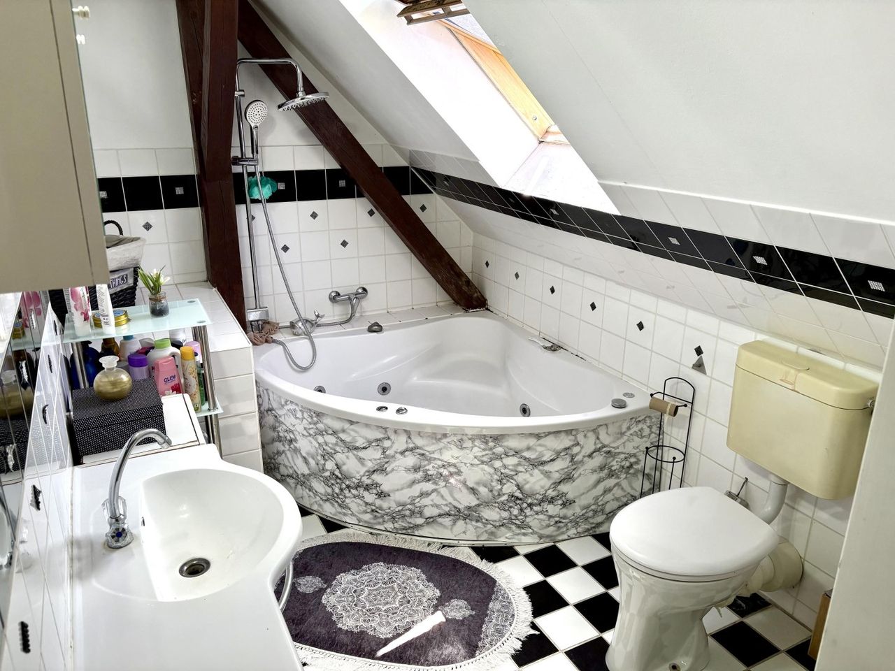 Im Obergeschoss stehen zwei Schlafzimmer sowie ein Badezimmer mit Eckbadewanne und Toilette zur Verfügung. Im teilunterkellerten Bereich ist ein Hauswirtschaftsraum mit Waschmaschinenanschluss, Dusche sowie eine Sauna untergebracht. Beheizt wird dieses Gebäude über eine vollfunktionsfähige Gaszentralheizung.