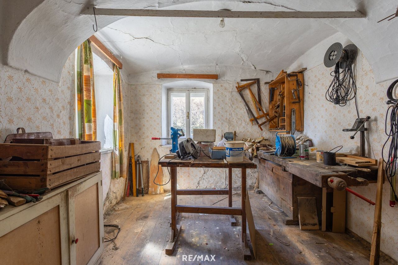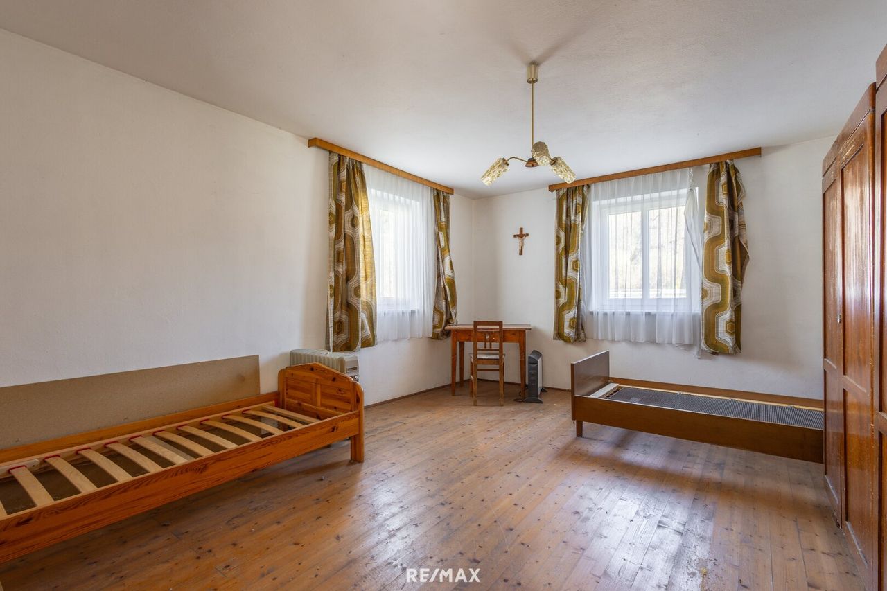 * Zweigeschoßiges Wohngebäude * ca. 166 m² Wohnfläche (davon ein kleiner Teil im Altbestand) * Hofstelle mit Wirtschaftsgebäude (für Großvieh nicht mehr geeignet) * Scheune mit Heulager im Obergeschoß des Wirtschaftsgebäude * ca. 1.000 m² Bauland rund um das Wohngebäude mit Obstgarten * ruhige gelegen * derzeit Pelletsheizung im Erdgeschoß * ca. 2.294 m² Bauland * ca. 15.333 m² landwirtschaftliche Fläche * ca. 42.403 m² Wald * in speziellen Fällen können auch Anteile davon erworben werden