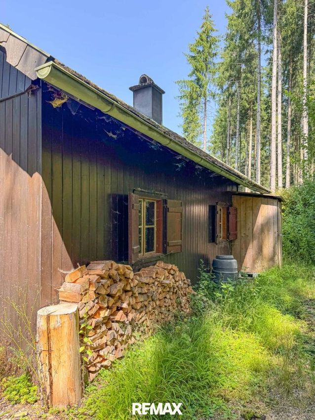 Für ALLE die gerne mitten im Wald arbeiten und sich gemütlich in der Arbeitshütte ausrasten, ist dieses Stück Wald ideal!
