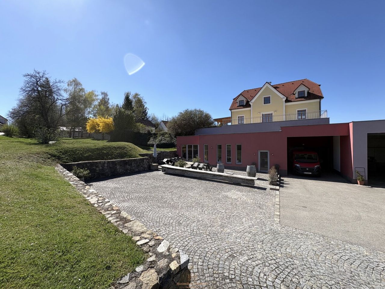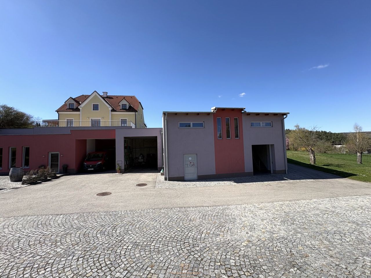 Das Objekt gelangt als vollständiges Gesamtpaket zur Veräußerung – neuwertiges Wohnhaus, sämtliche Betriebsanlagen und Geräte in bestem Zustand, repräsentativer Verkostungsraum sowie die gesamte Rebfläche von rund 9 Hektar in erstklassigen Kamptaler Lagen.