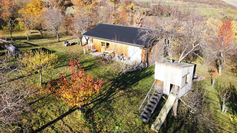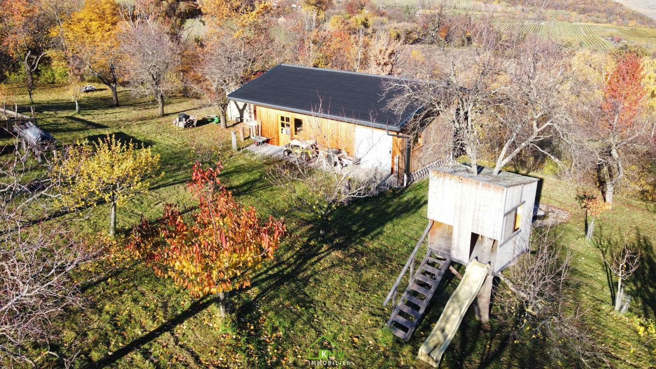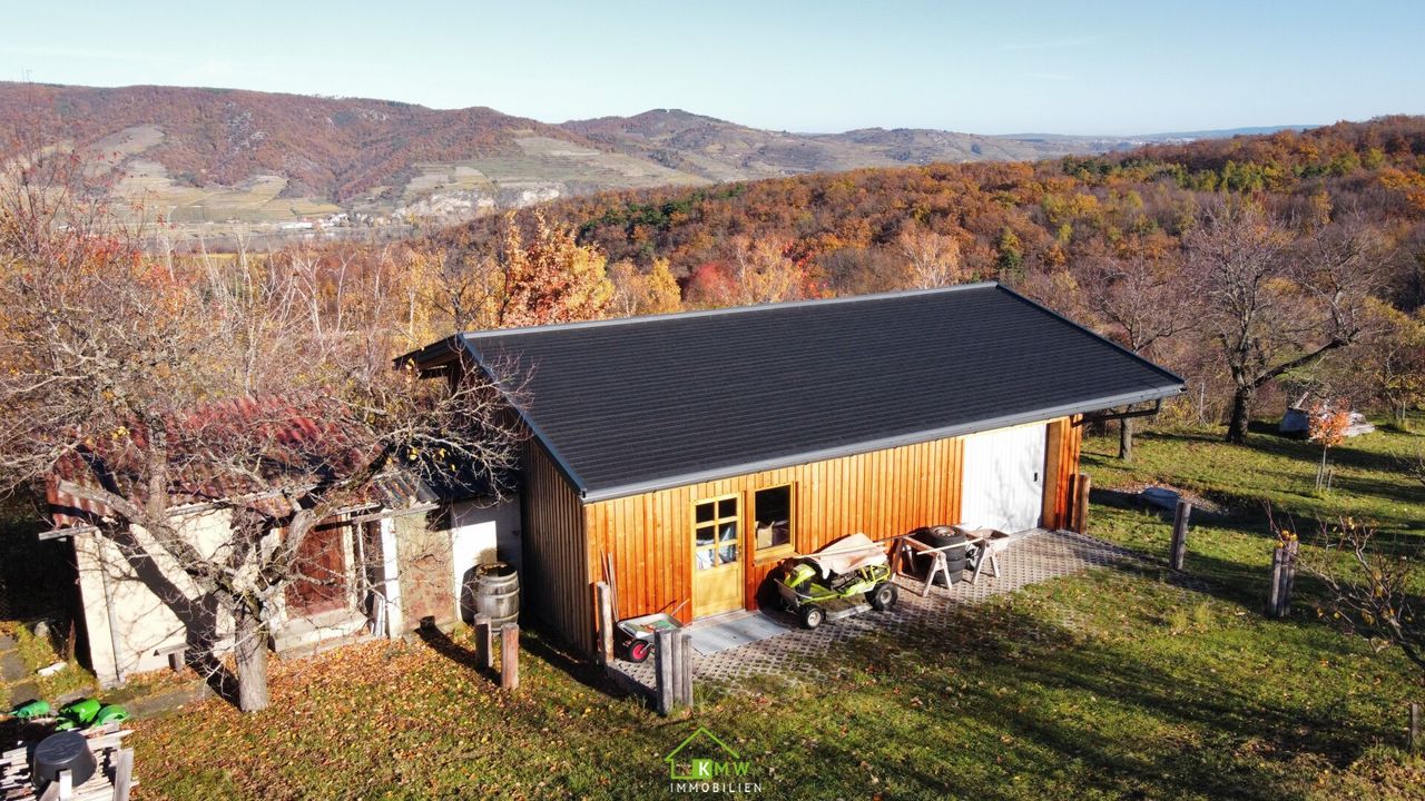 An Gebäuden besteht neben dem 1963 bewilligten Altbestand „Werkzeughütte mit Obstlagerkeller“ (saniert), ein in den letzten Jahren errichteter Neubau „ Lager- und Geräteschuppen“ mit einer Fläche von 60 m² in Wohnhausqualität. Große Wasserzisterne, Vorbereitung für PV Anlage. Gebäude im Grünland, alles baugenehmigt, nicht für Wohnzwecke gewidmet!