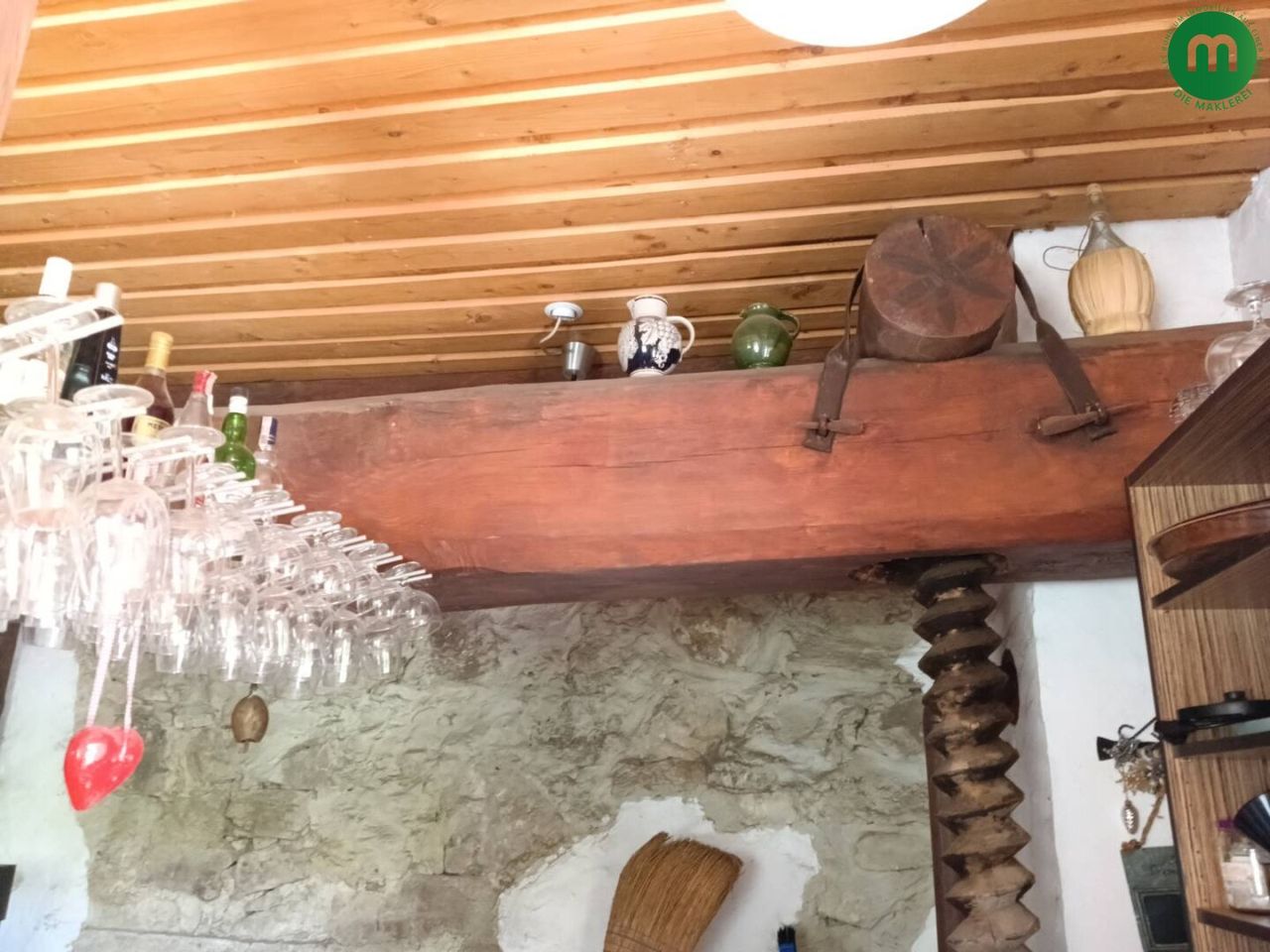 Eingangsbereich mit Weinstube („Stüberl“) mit uriger Holzdecke, traditionellem Mauerwerk und viel Atmosphäre