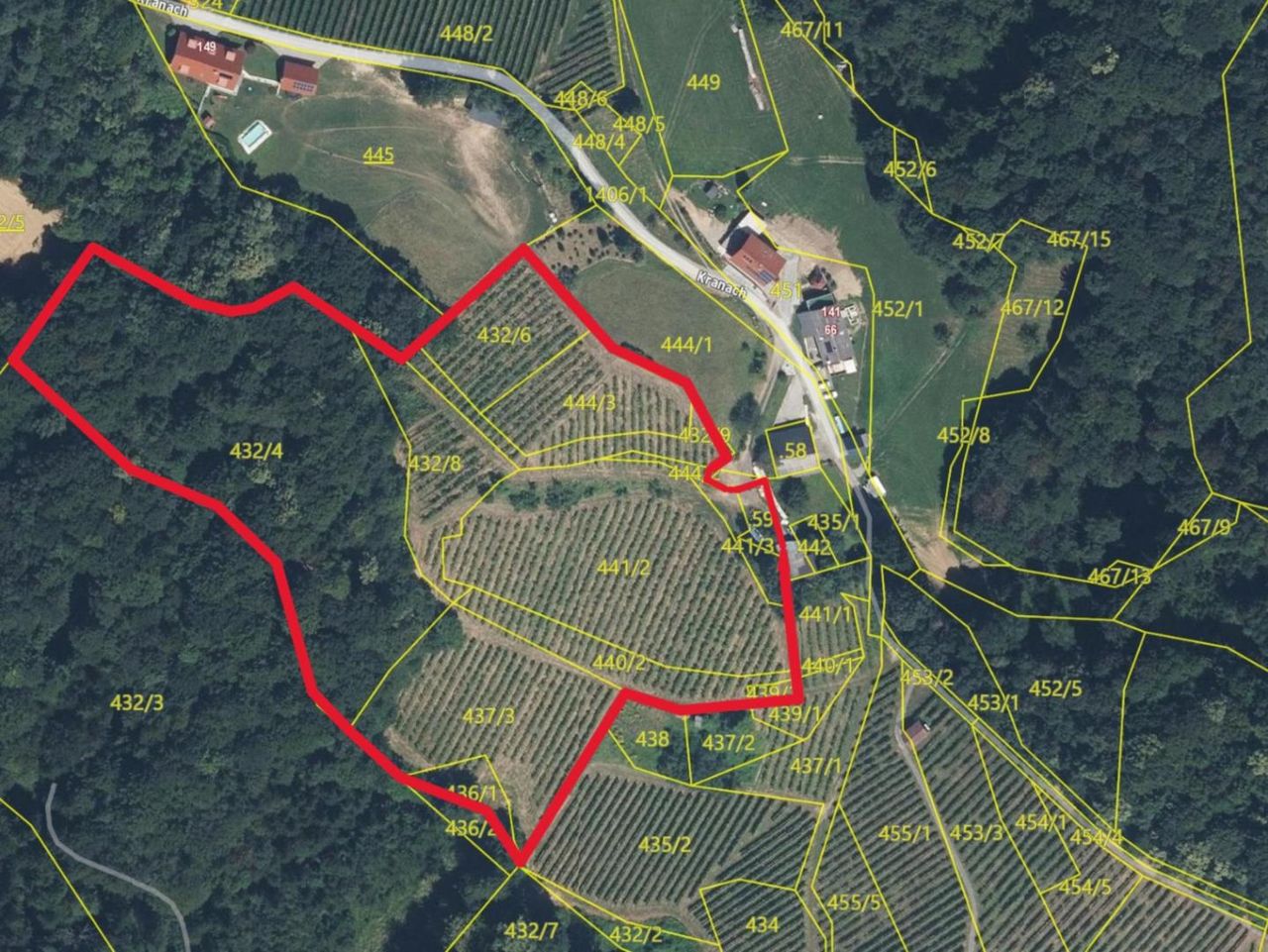 In bevorzugter Hanglage von Kranach, einem der renommiertesten Weinbaugebiete der Gemeinde Gamlitz, gelangt diese vielseitige landwirtschaftliche Liegenschaft zum Verkauf. Eingebettet in die sanfte Hügellandschaft der Südsteiermark vereint das Anwesen hochwertige Weingartenflächen mit Wald- und landwirtschaftlicher Nutzfläche.