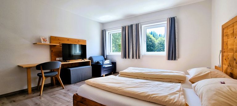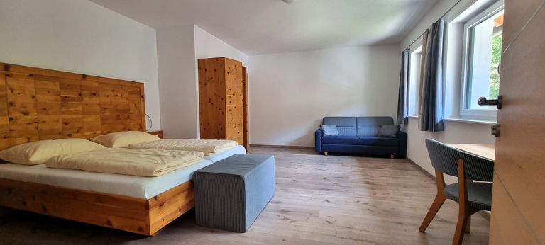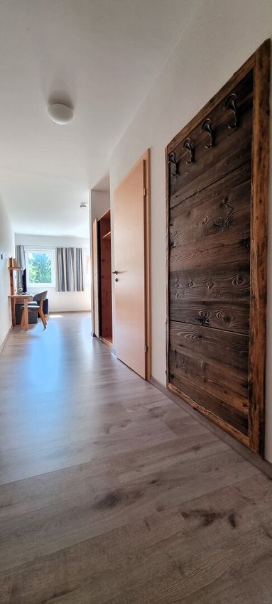 Besonderes Augenmerk wurde auf die Verwendung natürlicher Materialien gelegt: Die Gästezimmer aus edlem Zirbenholz schaffen eine warme, behagliche Atmosphäre, fördern das Wohlbefinden und stehen zugleich für Nachhaltigkeit und Beständigkeit.