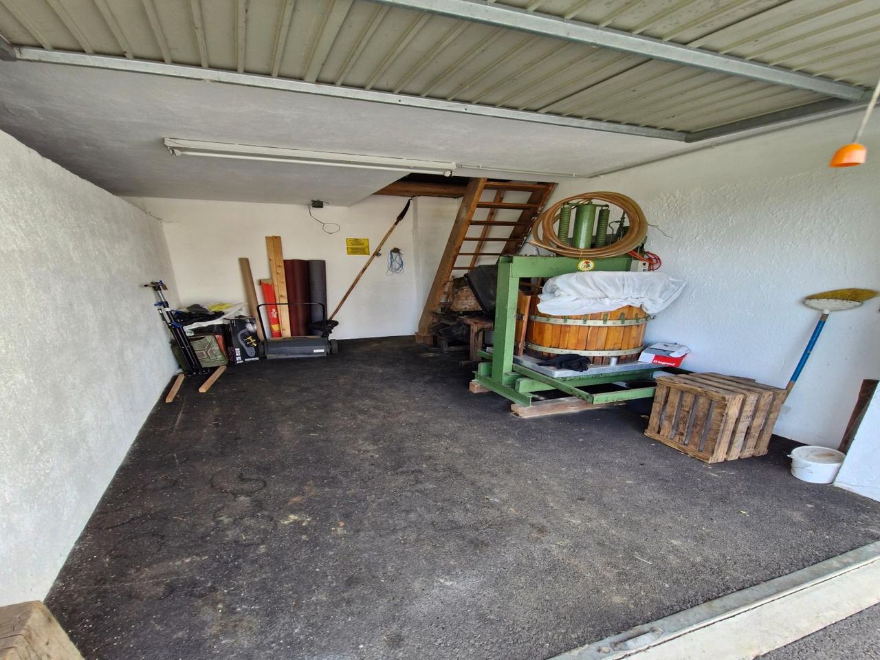 Das Nebengebäude wurde 1986 erbaut und ist in 3 Garagen, Holzlager, Werkstätte und Heizraum unterteilt, mit einem Gesamtmaß