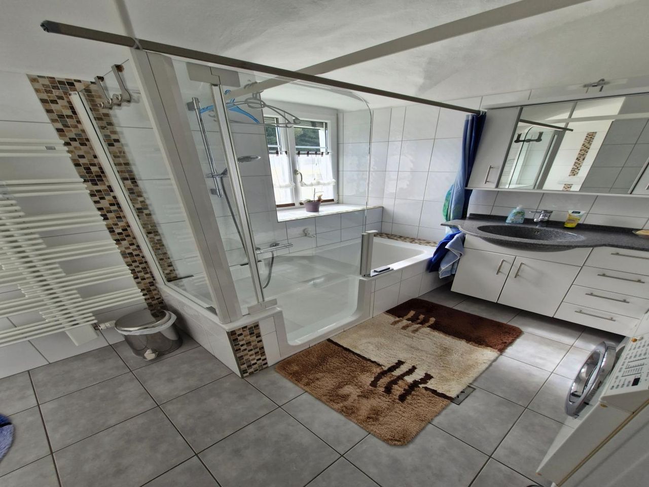 Das Erdgeschoss ist unterteilt in Stallungen, Tischlerwerkstatt, Melchkammer und einem Saunaraum mit Dusche.