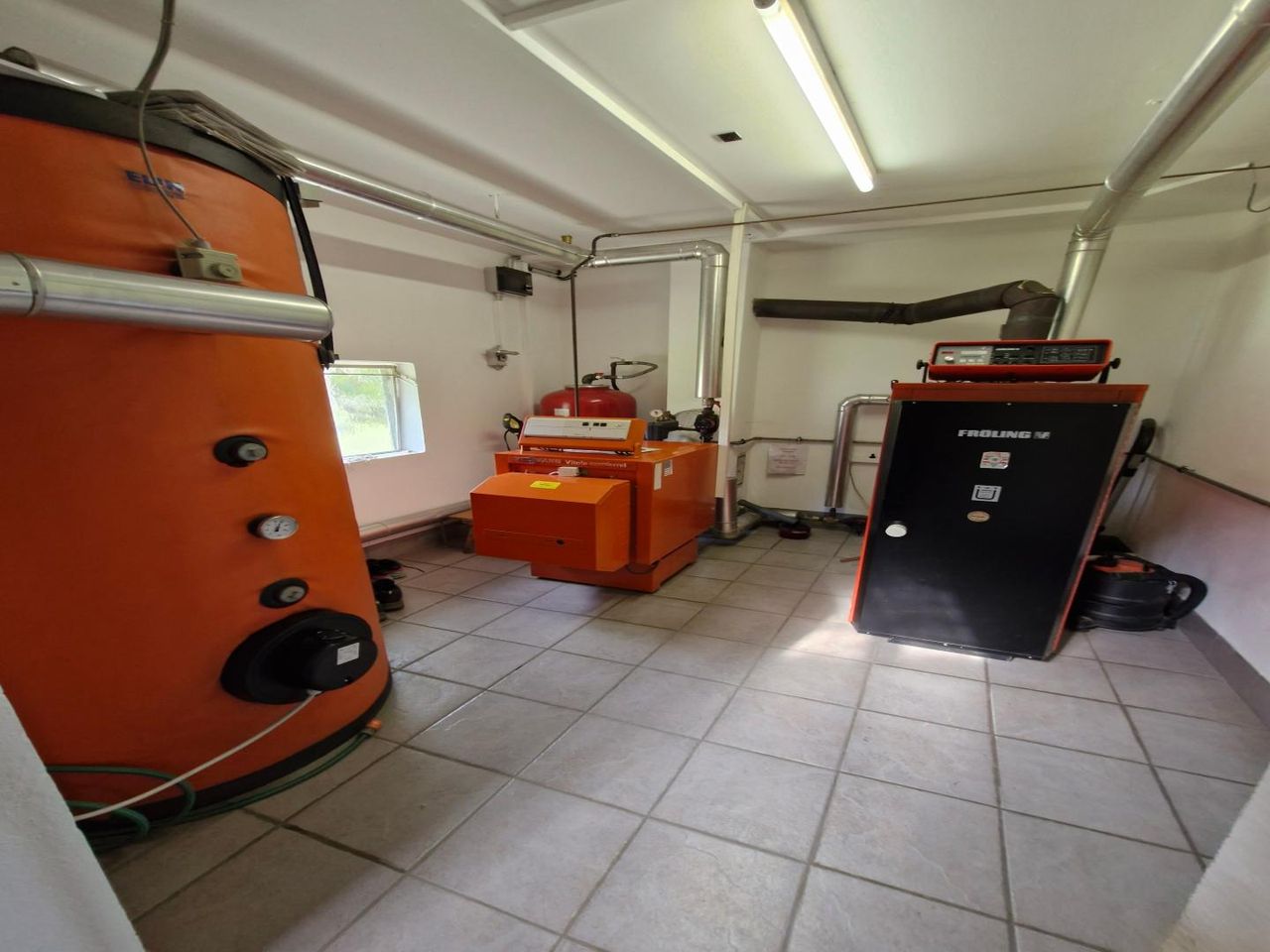 Die Heizung bestehend aus Holzvergaser und Ölheizung, kann beliebig ausgewählt werden, und der 1.000 Liter Pufferspeicher