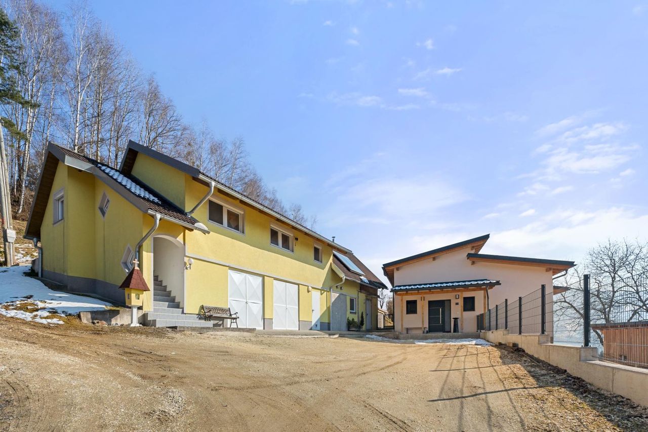 Auf einer Seehöhe von ca. 551 m – eingebettet in eine malerische Landschaft aus Wiesen, Wäldern und Bergen – bietet dieses außergewöhnliche Anwesen auf ca. 132.334 m² Fläche eine seltene Gelegenheit für alle, die sich Ruhe, Naturverbundenheit und modernen Wohnkomfort wünschen. Das Grundstück ist eine arrondierte, zusammenhängende Fläche mit eigener Zufahrt – ein wahres Paradies für Selbstversorger, Pferde- und Naturliebhaber.