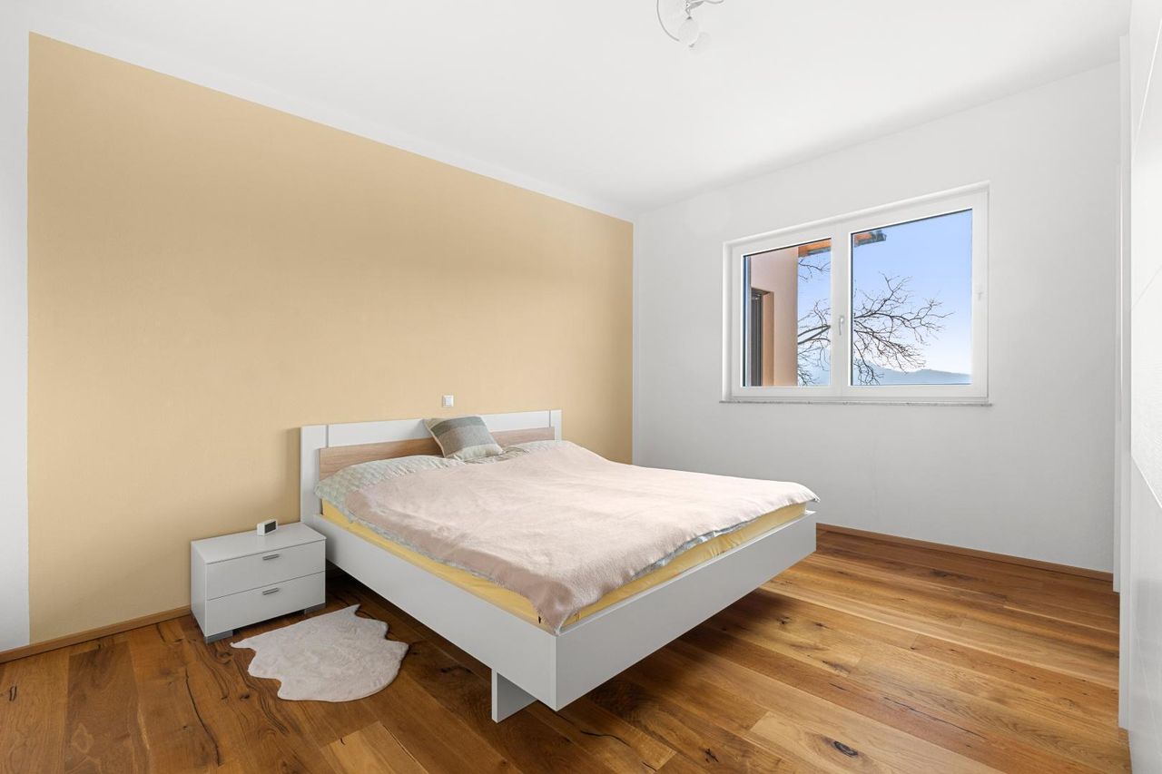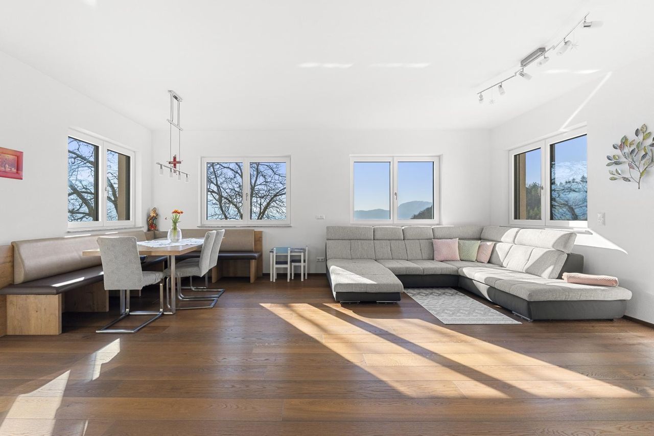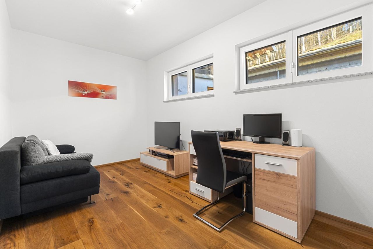 Die Immobilie ist exklusiv und modern möbliert. Das Haus ist ausgestattet mit hochwertigen Internorm-Fenstern mit 3-fach-Verglasung, elektrischen Jalousien und Insektenschutz. Zwei Tageslichtspots im Flur sorgen für angenehmes Licht. Beheizt wird das Haus mittels einer Pellets-Zentralheizung und die installierten Raumthermostate ermöglichen eine perfekte Regulierung des Raumklimas. Zur Warmwasseraufbereitung wurde eine Solaranlage errichtet. Große Fensterfronten holen die Natur ins Haus und eröffnen einen unvergleichlichen Blick auf die umliegende Landschaft. Das Badezimmer ist mit Badewanne und barrierefreier Dusche ausgestattet. Eine teilüberdachte Terrasse mit ca. 48,74 m² schafft einen perfekten Wohlfühlort umgeben von herrlicher Natur.
