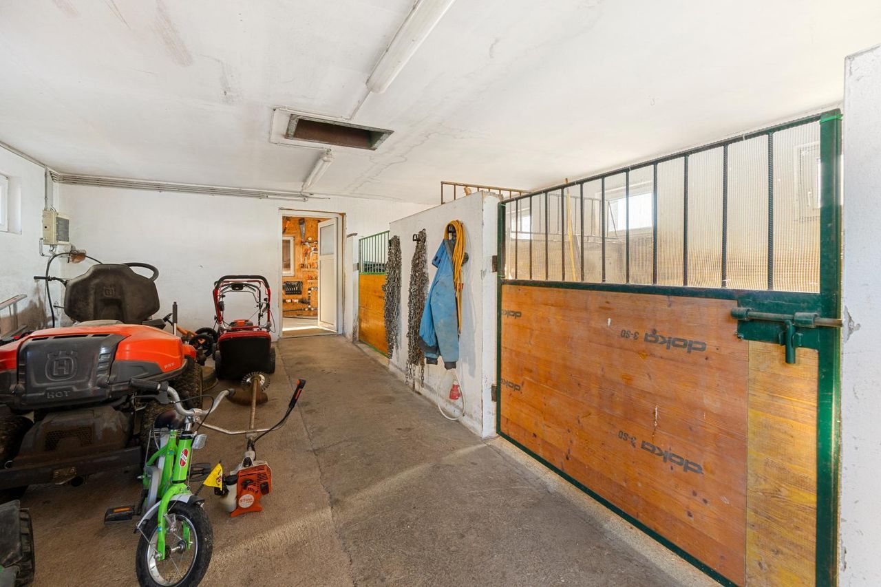 Für Tierhaltung ist das Anwesen bestens ausgestattet und geeignet. Ein Stallgebäude mit ca. 72,92 m² Fläche verfügt über zwei Pferdeboxen, eine Werkstatt und ein Heulager. Weiters gibt es einen separaten Hühnerstall mit einer Größe von ca. 15 m².
