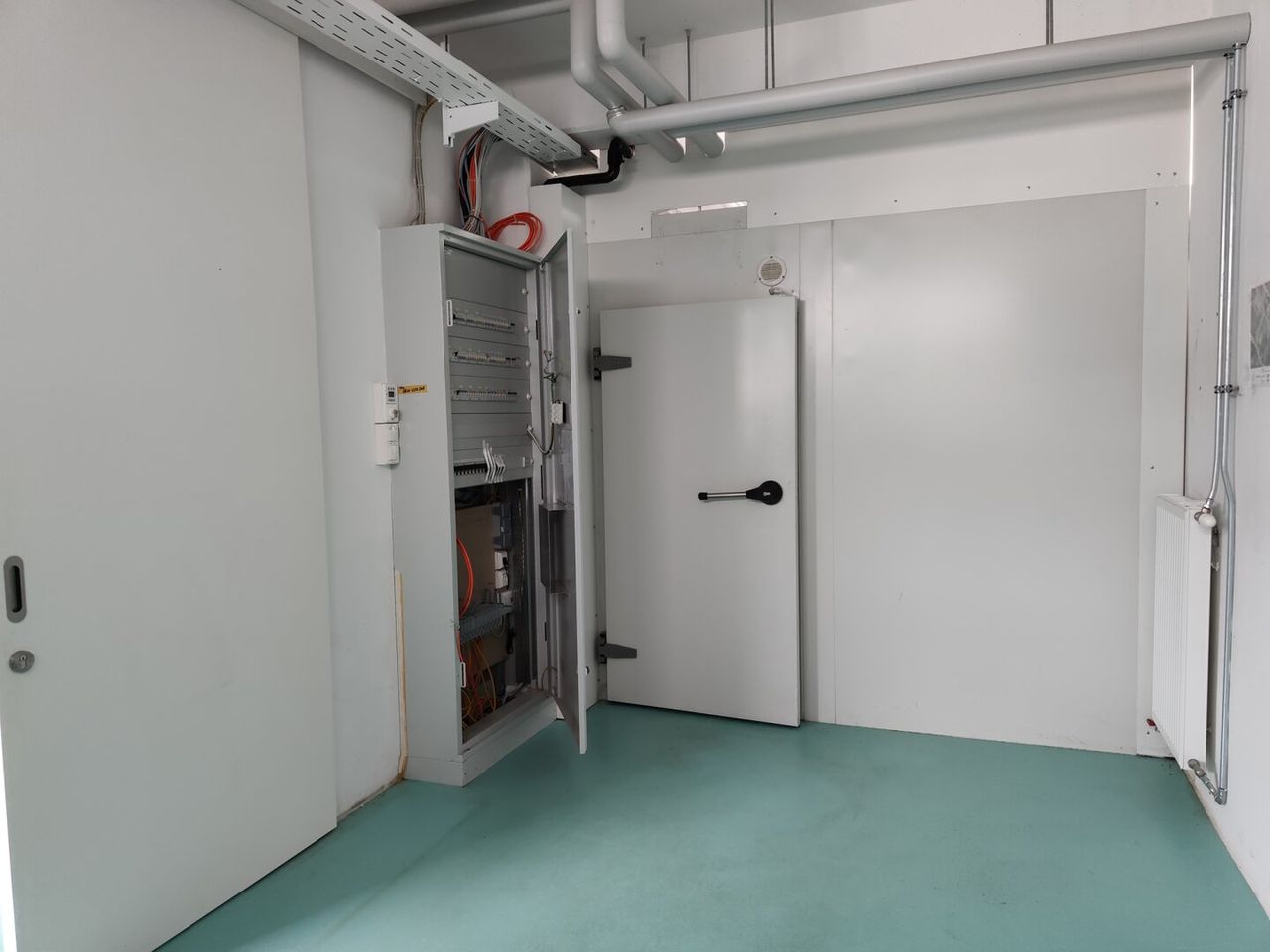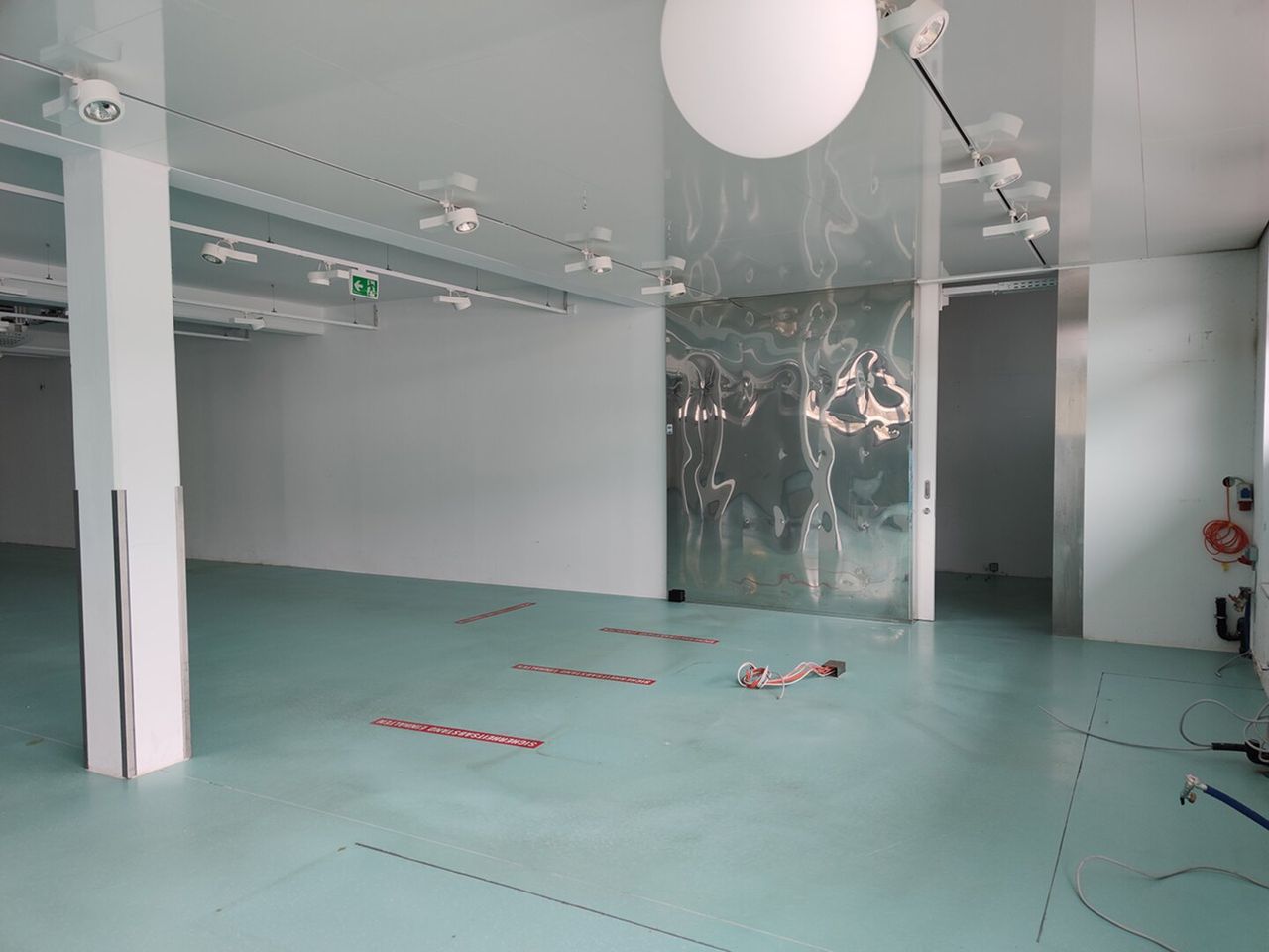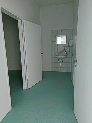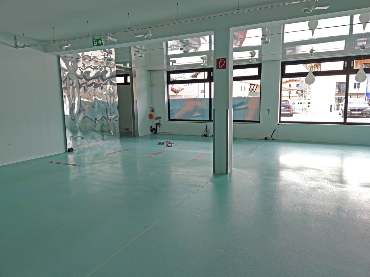 Anschlüsse für Küche, Wasser, Starkstrom, diverse Abflüsse sind vorhanden.
