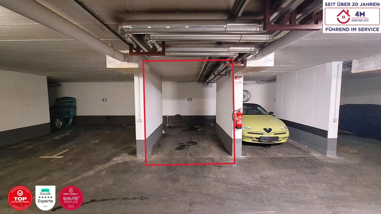 Der Stellplatz ist ca. 2,30 m breit und befindet sich im Untergeschoss.