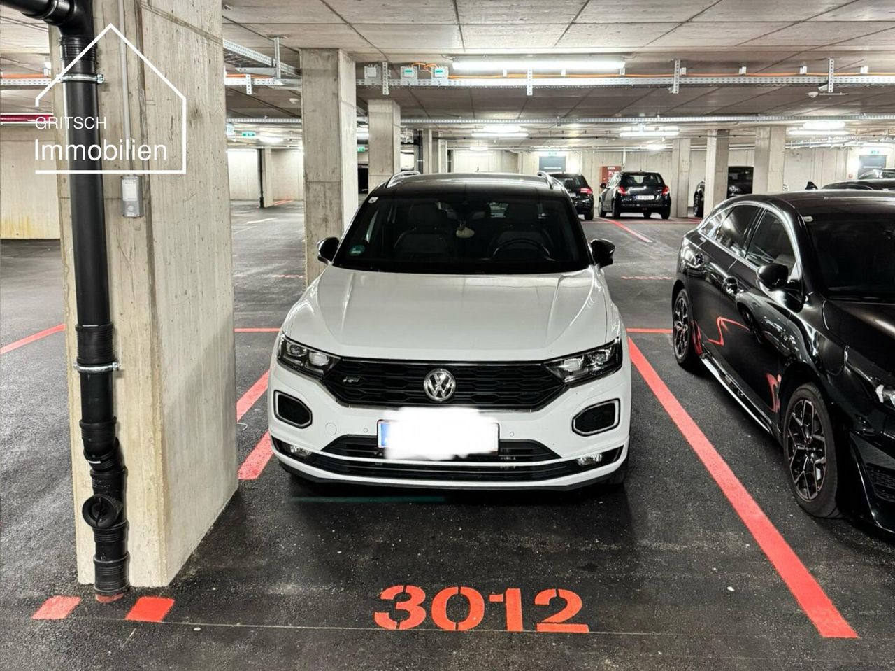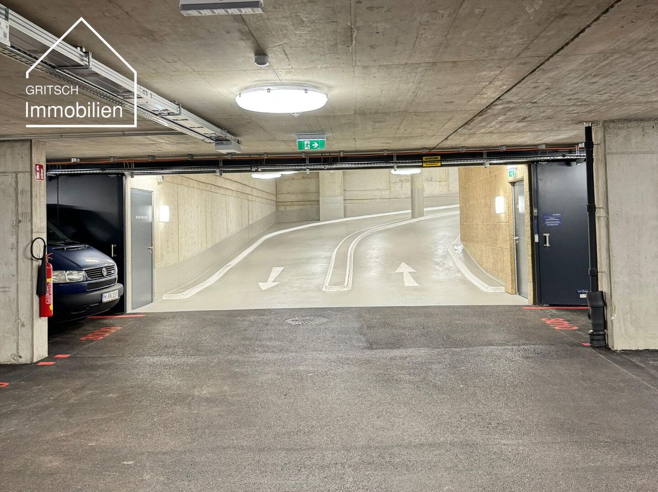 Moderne, saubere und helle Tiefgarage mit elektrischem Torzugang und Lift
