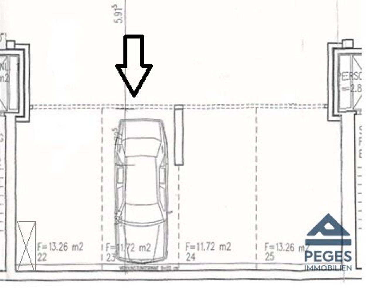 Der Stellplatz verfügt über ein Flächenausmaß von 11,72 m² (lt. Plan) - es ist kein Stromanschluss vorhanden.