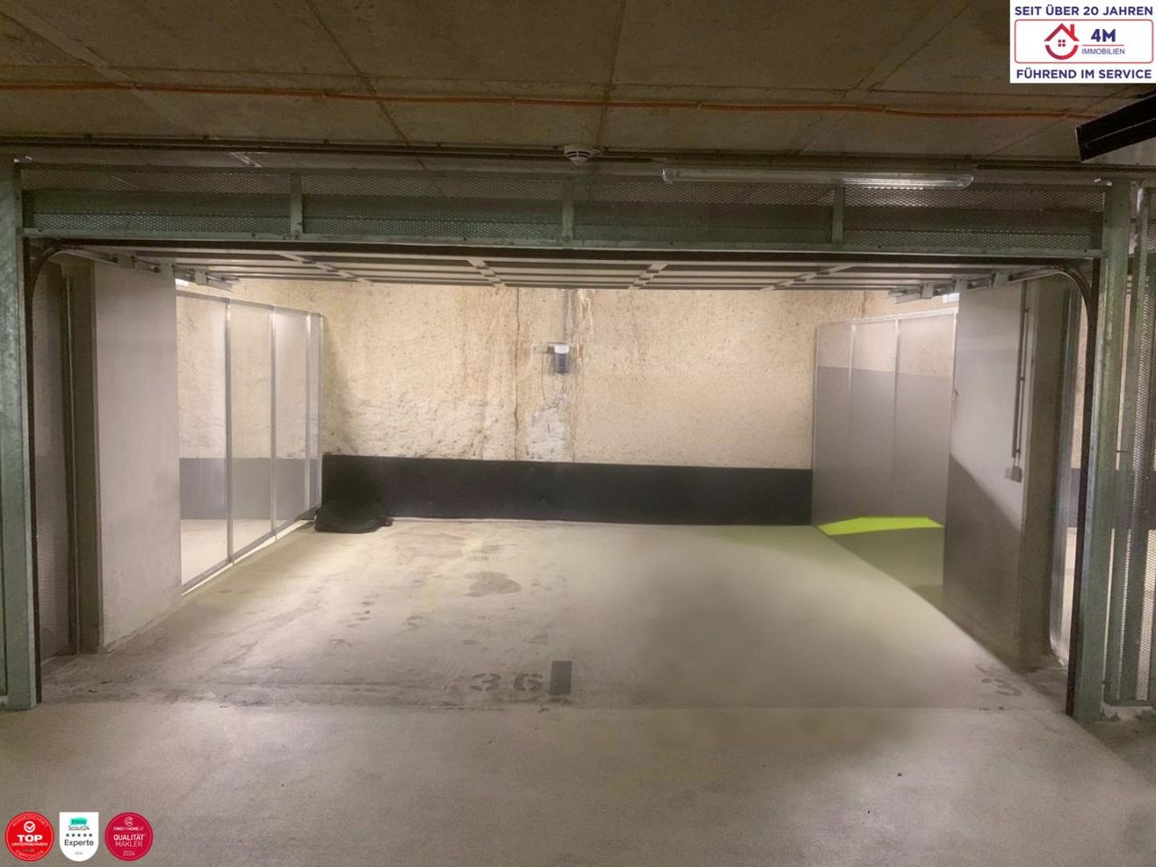 Zur Vermietung steht eine großzügige, vollständig abgeschlossene ca. 26 m² Doppel-Garagenbox im 3. Untergeschoss einer gesicherten Wohnanlage direkt an der U1 Kagraner Platz.