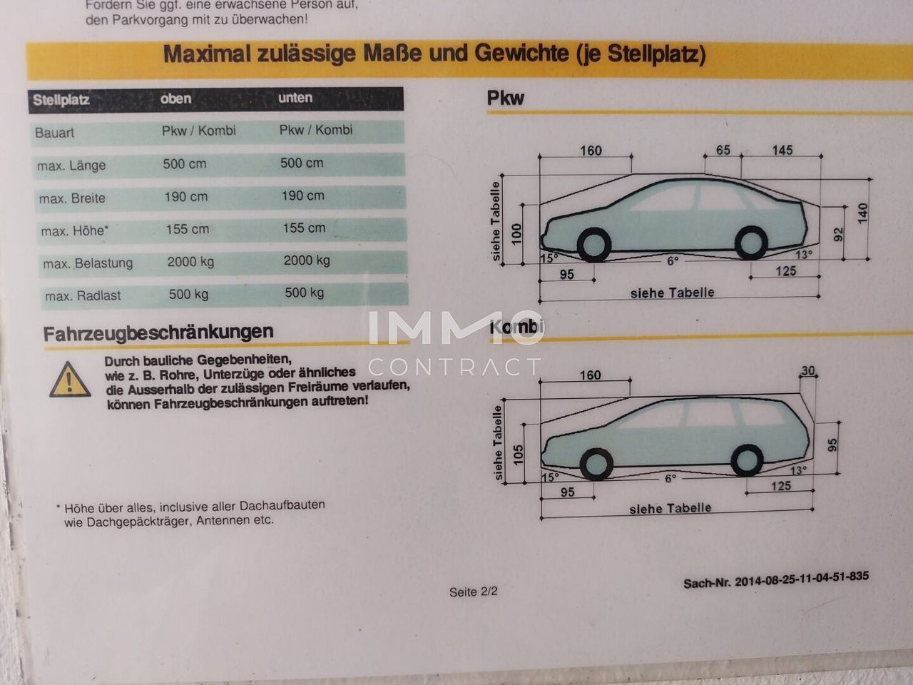 max.155 cm hoch und max. Gewicht 2000 kg