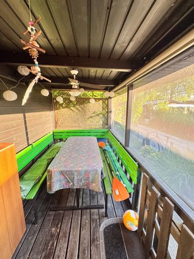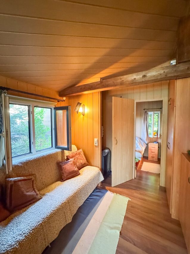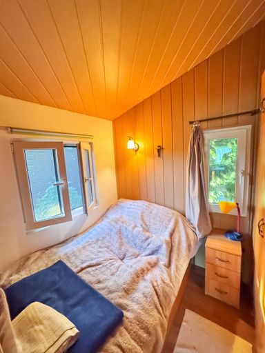 Ausstattung: - ca. 35 m2 Wohnfläche - 1 Schlafzimmer - Wohnraum mit Doppelausziehcouch (2 Schlafplätze) - Badezimmer mit Dusche und WC - möbliert Küche - aussen und innen mit Holz getäfelt
