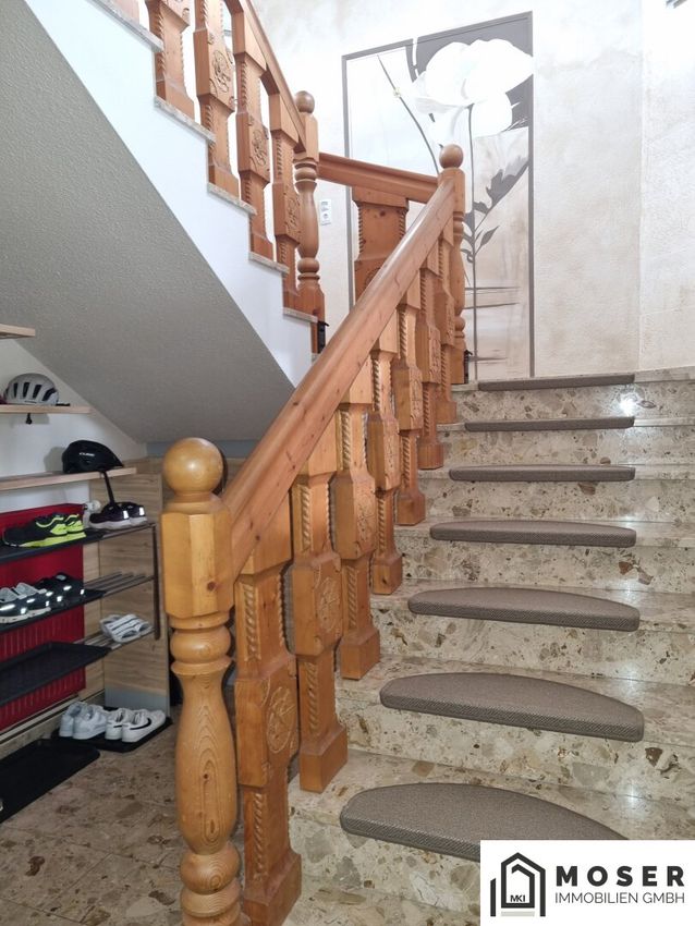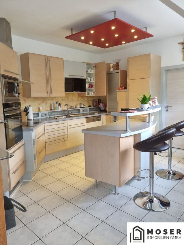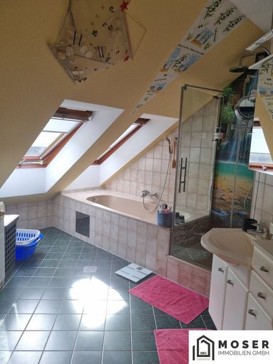Im Ober u. Dachgeschoss befindet sich eine separat zugängliche Wohnung mit insgesamt 268 m² Wohnfläche bestehend aus 6 Zimmern, 4 Badezimmer, Wohn- Ess- und Kochbereich sowie einer nach nord-westen ausgerichteten großen Terrasse (Boden wäre auszutauschen) mit Pavillon.
