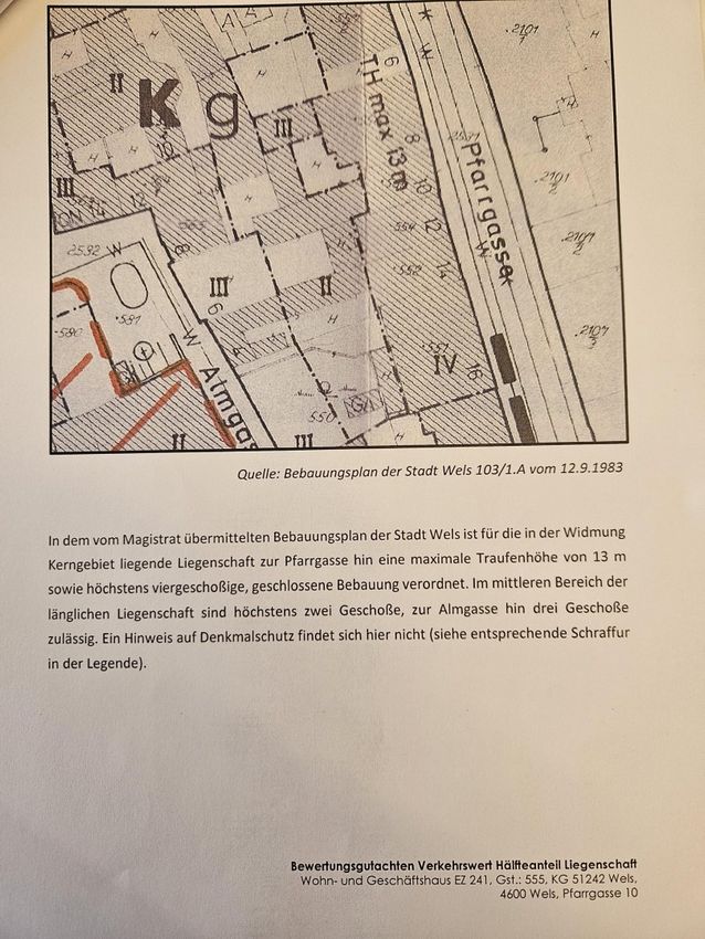 Ideal für Bauträger, Investoren und Projektentwickler - Stadthaus mit Entwicklungspotential in zentralster Lage! Sanierungsbedürftigs Ensemble mit Bestandsobjekten zwischen Pfarrgasse und Almgasse und Projektentwicklungspotential im Zentrum von Wels. Langfristiges Baurecht vorstellbar, kein Verkauf ! Grundsanierung des Objektes erforderlich. Widmung: K, dzt. Bebauungsmöglichkeiten siehe im Anhang "Auszug Bebauungsplan" Ein konkretes Projekt müsste dann mit der Stadt Wels weiter abgestimmt werden. Weiters könnte die Liegenschaft auch eine größere Projektentwicklung zwischen Pfarrgasse und Almgasse miteinbezogen werden. Interessenbekundungen für Projektentwickler, Bauträge, Zinshausinvestoren, Selbstnutzer werden von uns entgegengenommen. Provisionsfrei für den Baurechtsnehmer. Bei Interesse wenden Sie sich an den Wirtschaftsservice Wels - unter 07242 677 22...