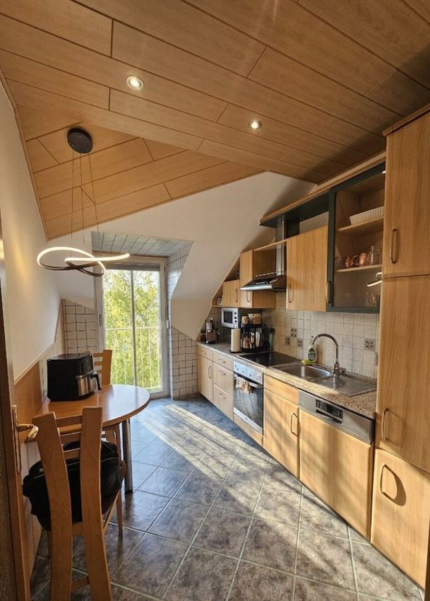 - ein zusätzlicher neuer Briketts-Kaminofen im Wohnraum sorgt für ein angenehmes Wohnklima