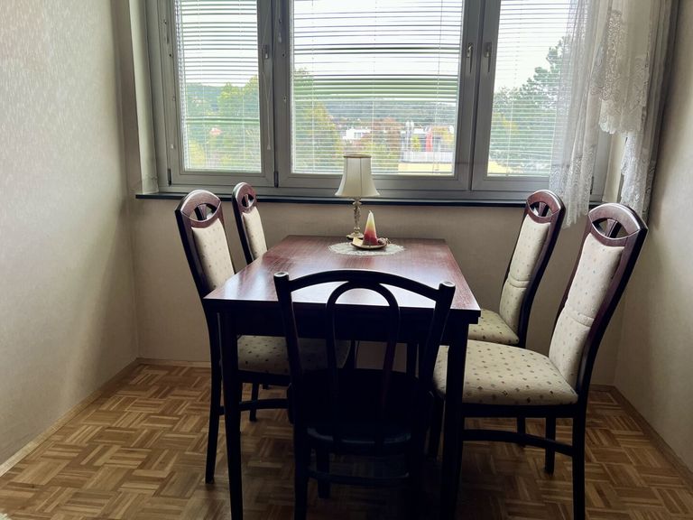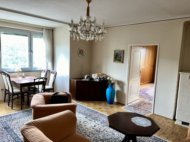 - Bodenbeläge: Hochwertiger Parkettboden in Wohn- und Schlafzimmer, Fliesen in Bad , Linoleum in der Küche