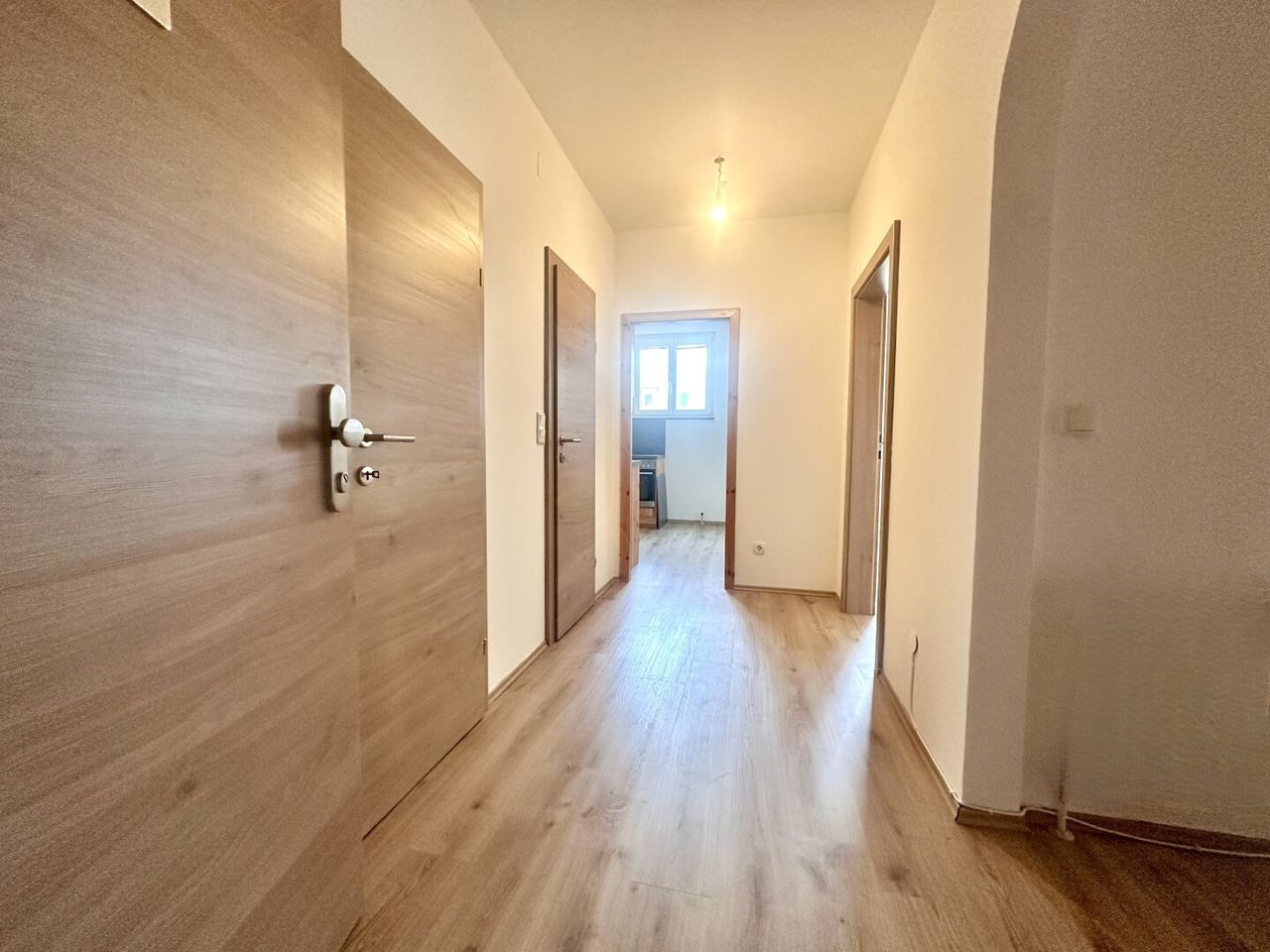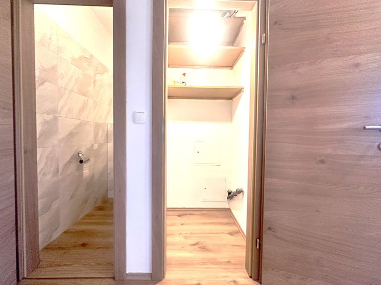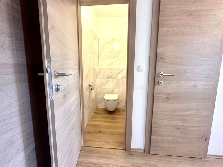 Die Wohnung wurde mit einem hochwertigem Bodenbelag, neuen Türen, WC und Bad renoviert.