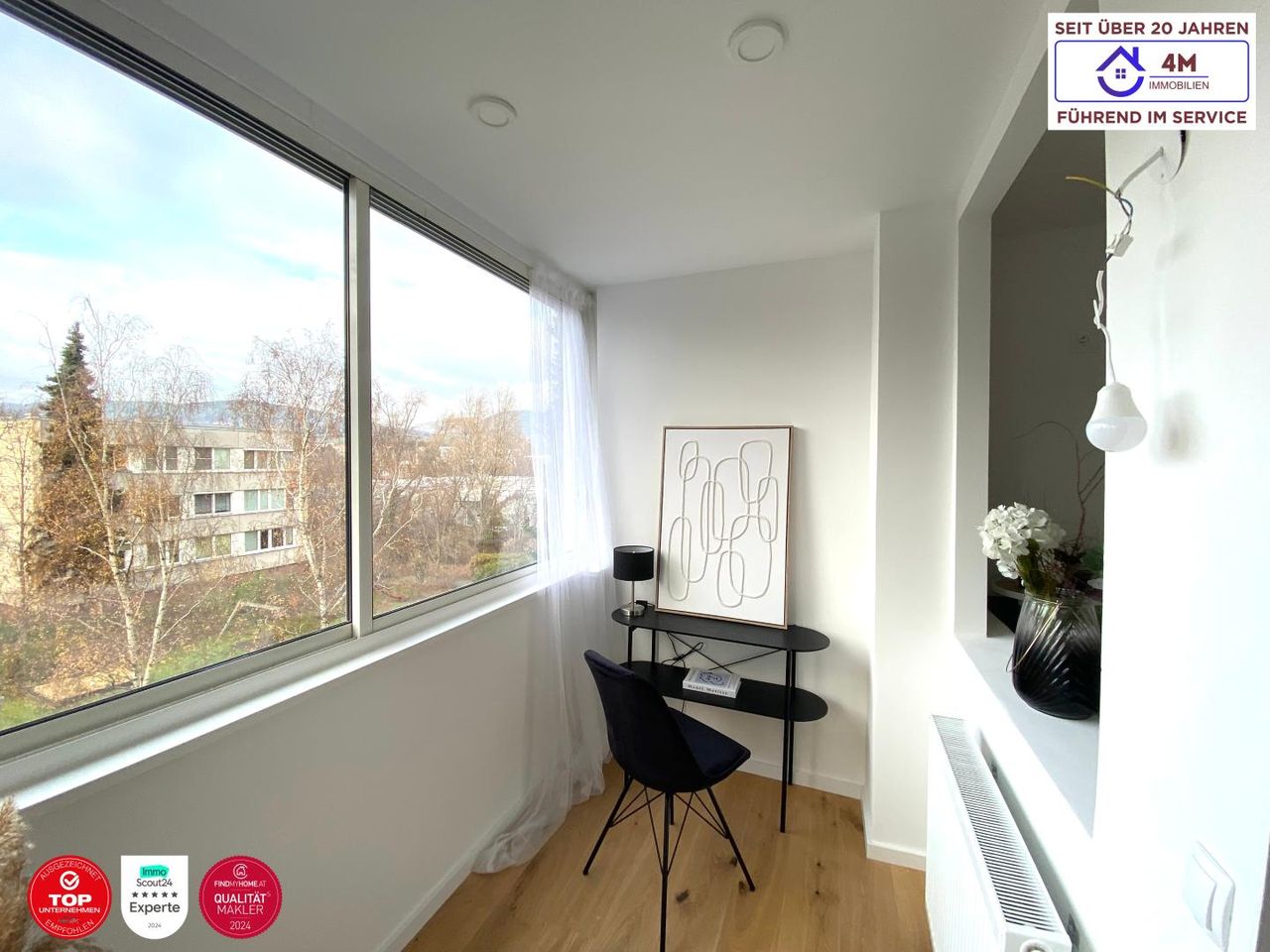 Direkt vom Wohnbereich aus gelangt man auf die Loggia, die den Wohnraum sinnvoll nach außen erweitert und zu jeder Tageszeit nutzbar ist.