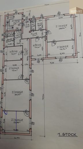 - Zwei Wohnungen im 1.Stock (eine 70 m² Wohnung ohne direkten Gartenzugang sowie der zum Verkauf angebotenen Wohnung).