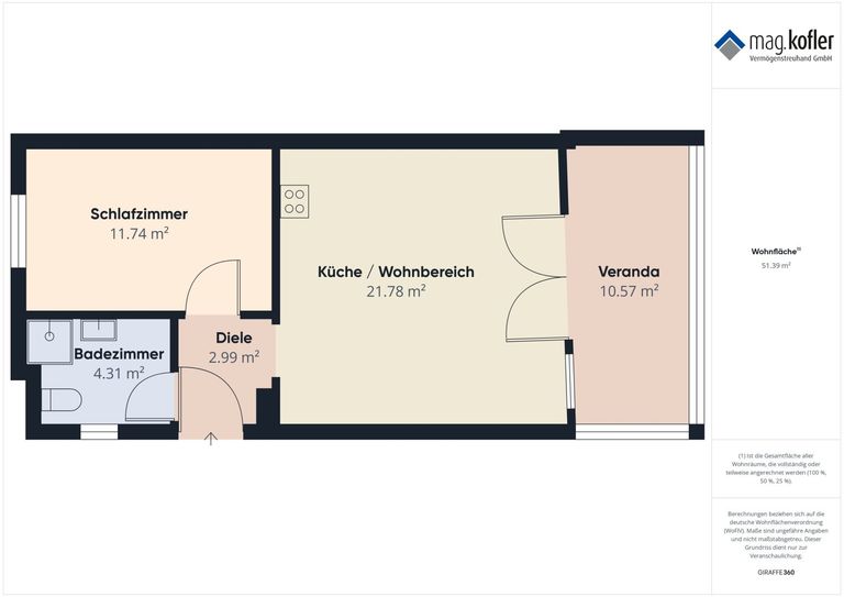 gesamte Wohnnutzfläche: ca. 51,40 m²