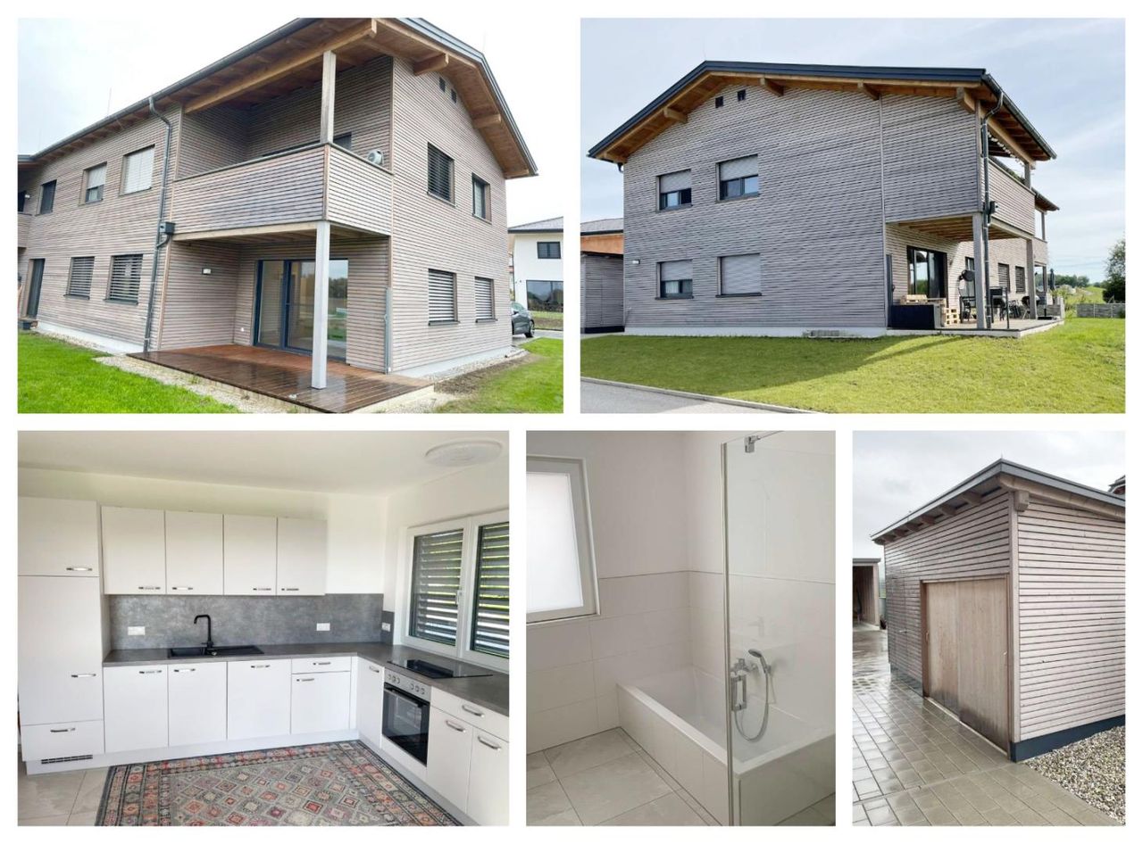 Die Raumaufteilung, das großzügige Kellerabteil, die Fußbodenheizung, die Solaranlage, der eigene Gartenanteil, die Terrasse, die 2 Carportplätze, die allg. Besucherparkplätze, die Küche mit Esszimmer, der Abstellraum, die Raffstores und Insektengitter, der Parkett und Fliesenboden und die Nähe zu Salzburg, Burghausen und Braunau rundet dieses Angebot ab.