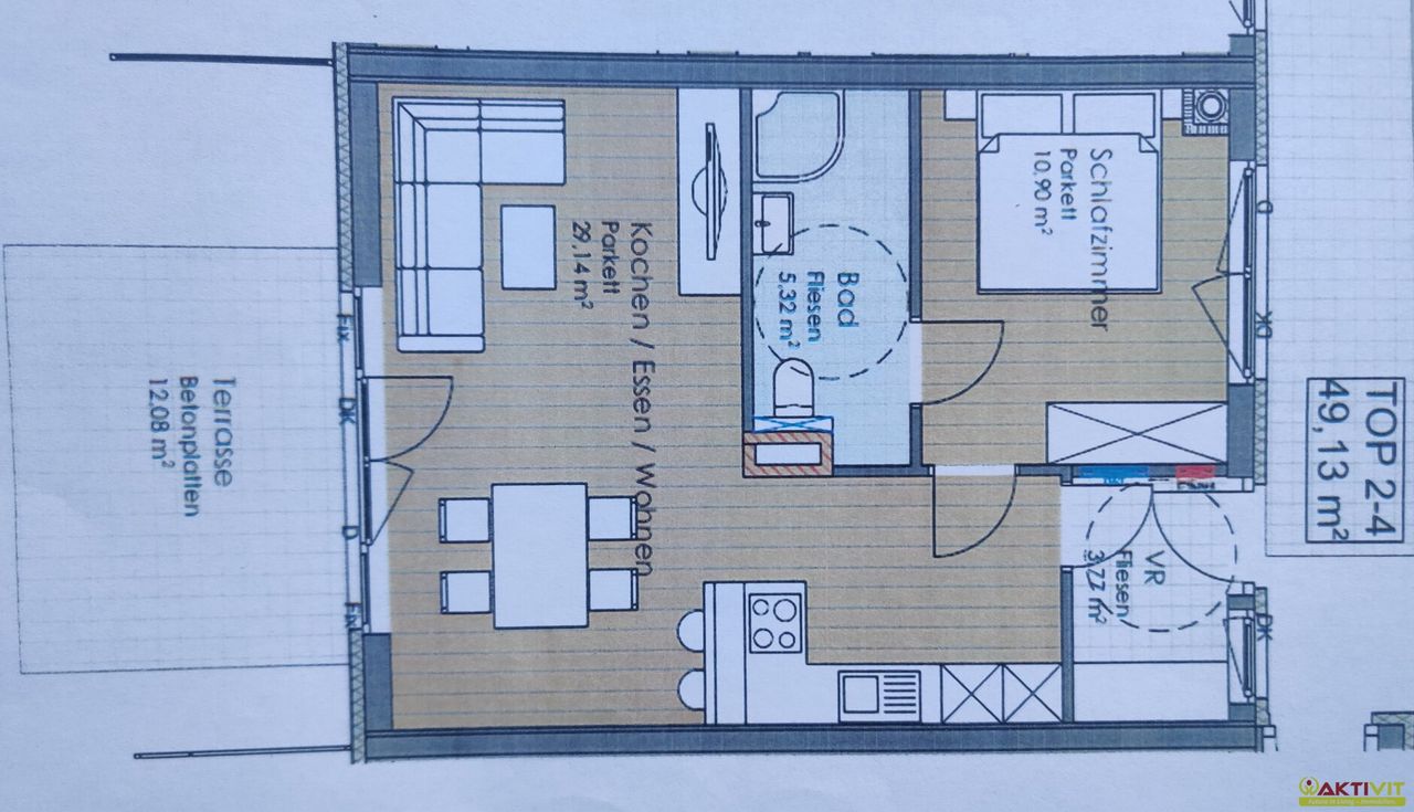 Die Wohnung umfasst eine Wohnnutzfläche von ca. 49,13 m² und ist klar und funktional aufgeteilt. Man gelangt beim betreten der Wohnung in einen kleinen Vorraum, von diesen geht es weiter in einen Gang mit der Küche. Rechts davon ist das Schlafzimmer. Vom Schlafzimmer gelangt man in das Bad mit Dusche und WC. Zurück zum Gang, kommt man nach der Küche in das Wohn/Esszimmer von dem aus man auch auf die Terrasse kommt mit Garten - ideal als private Freifläche im Grünen. Ergänzend zur Wohnfläche steht ein Kellerabteil mit ca. 10 m² zur Verfügung, das zusätzlichen Stauraum bietet. Ein Carport-Stellplatz gehört ebenfalls zur Wohnung und sorgt für komfortables Parken an der Liegenschaft.